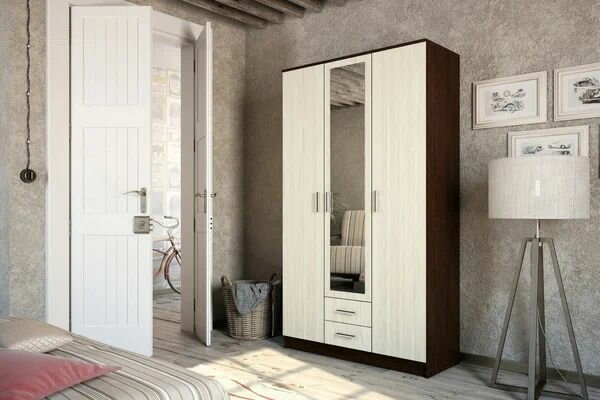 Отзывы на Шкаф распашной Трио Дуб Венге/Сосна Лоредо ЛДСП с полками, ящиками, штангой, зеркалом, для спальни, гостиной 1200х2200х487 ЭРА
