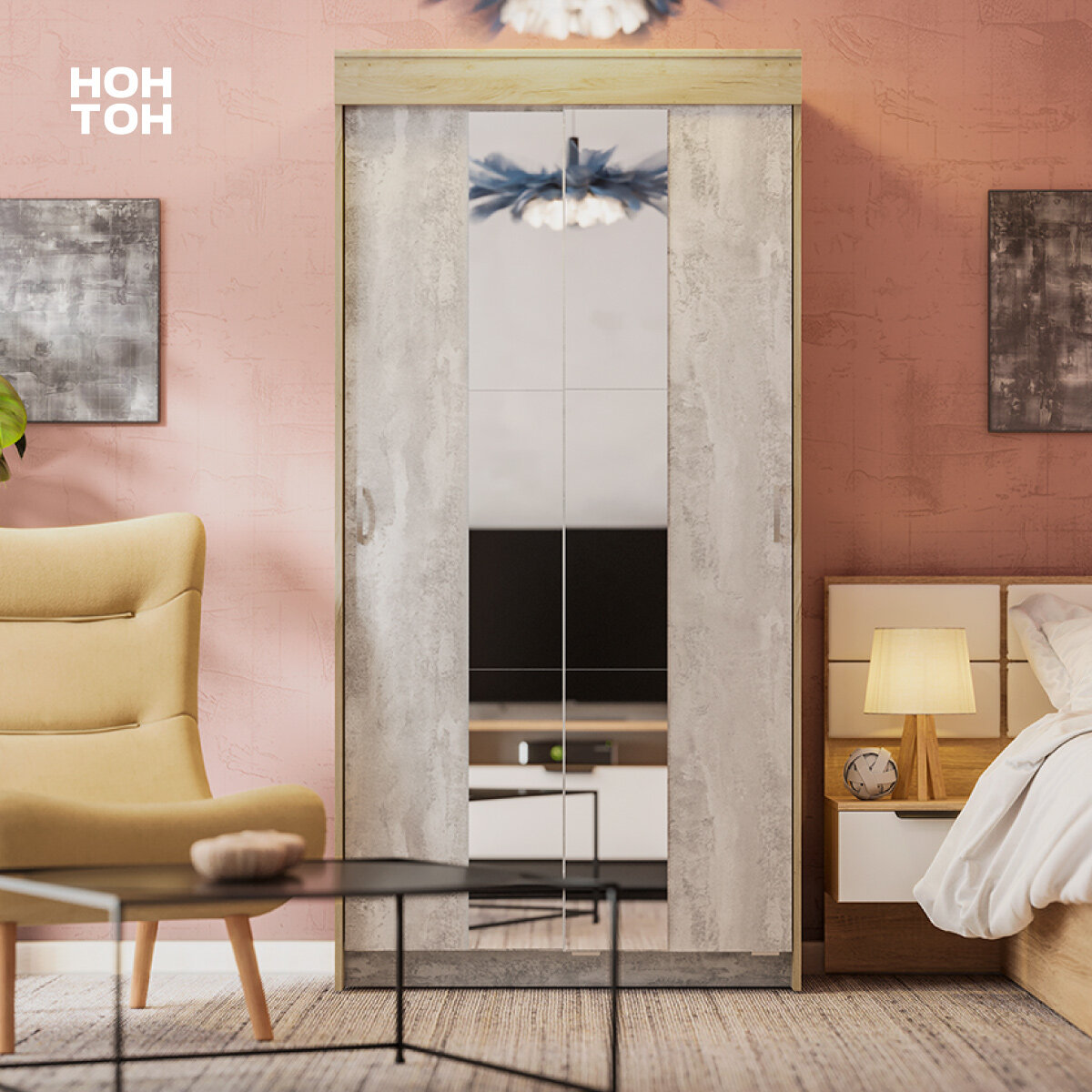 Отзывы на Шкаф-купе для одежды Нонтон Бассо, 2 зеркала, дуб крафт серый / бетонный камень 100 см