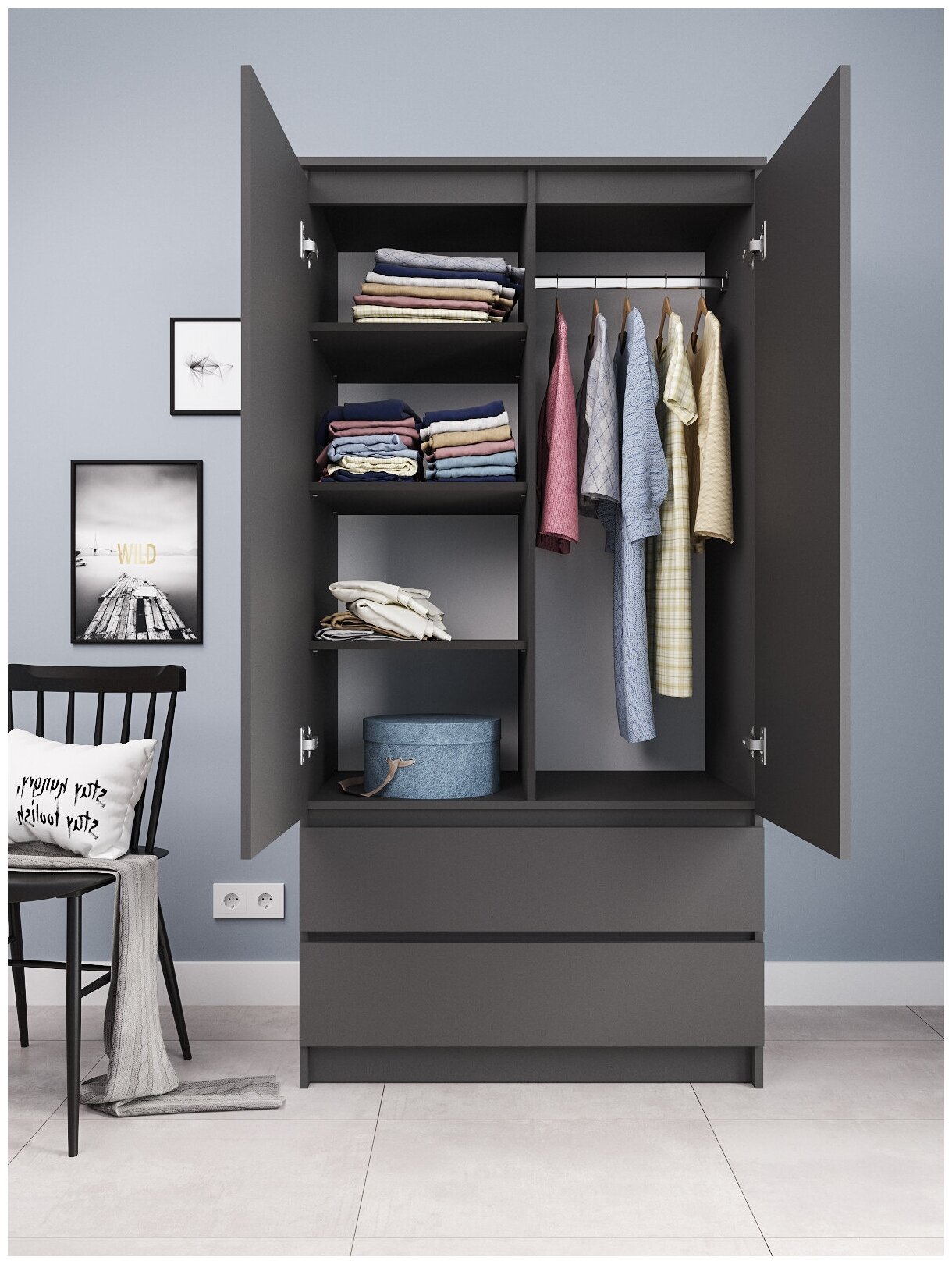 Шкаф двухстворчатый с полками, штангой и ящиками, 900.1 Графит 14 474 ₽