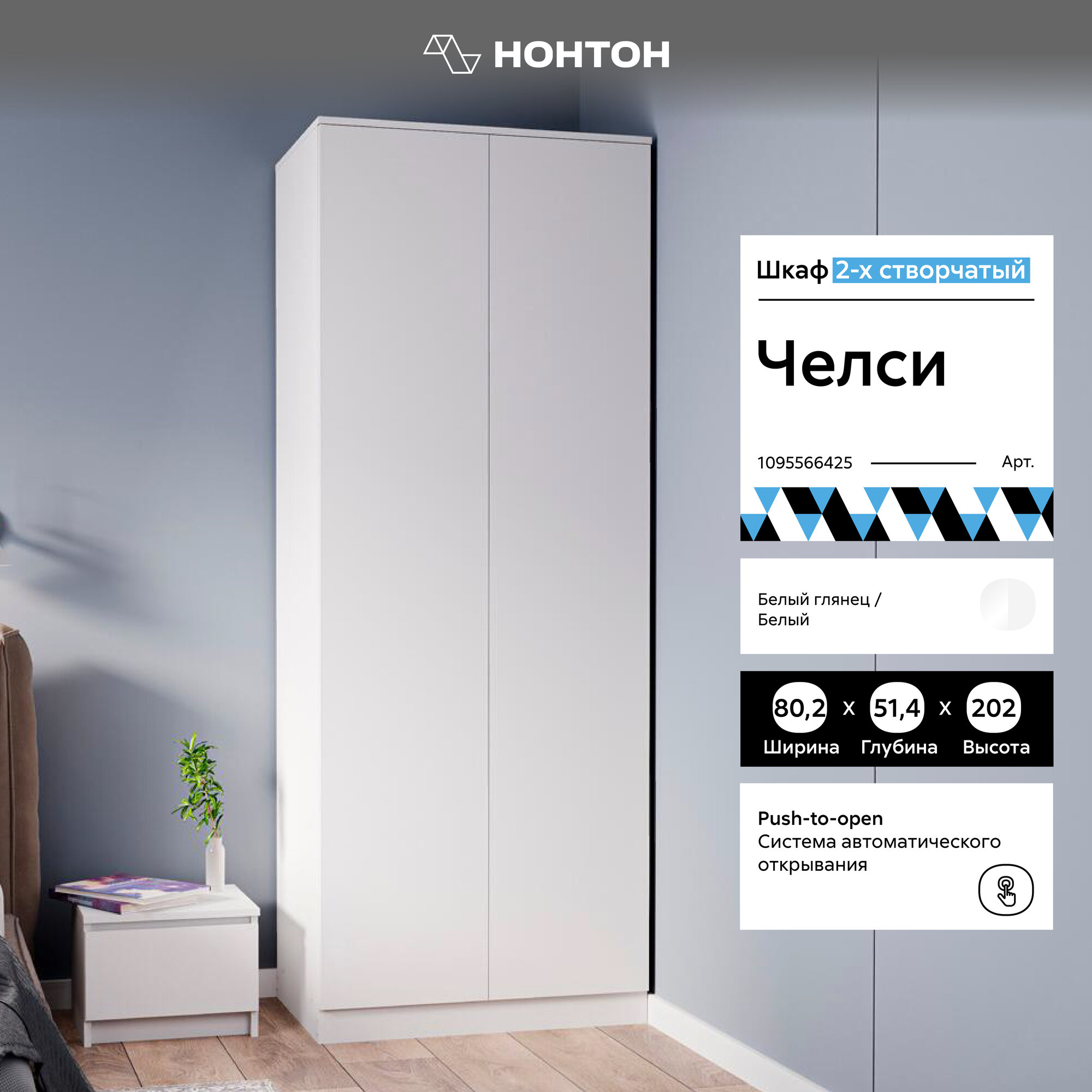 Шкаф для одежды распашной Нонтон Челси, белый / белый глянец, 95 см 13 490 ₽