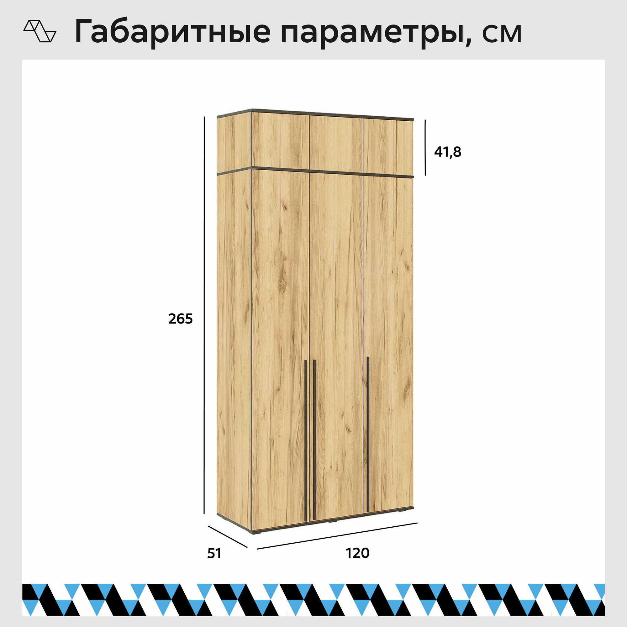 Шкаф 3-х ств. Норд + антресоль 1200х2654х510 мм Дуб крафт информация: