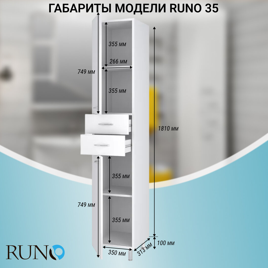 Шкаф в ванную пенал напольный Runo 35 / левый 13 520 ₽