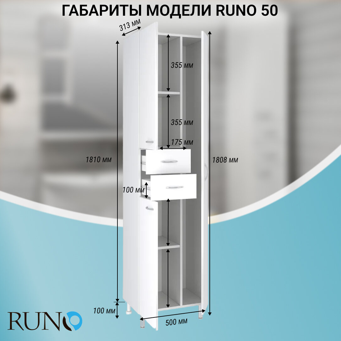 Шкаф в ванную пенал напольный Руно 50, правый, белый информация: