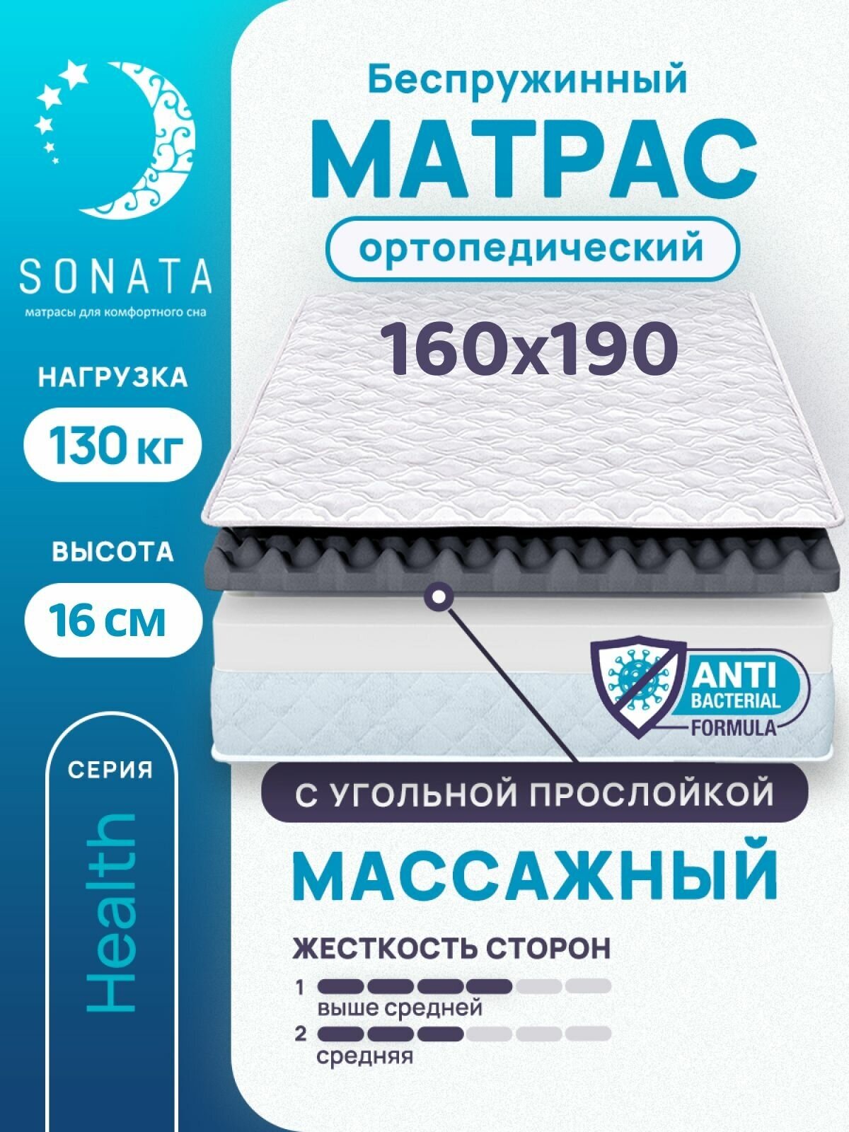 Матрас 160х190 см SONATA, ортопедический, беспружинный, высота 16 см, с массажным эффектом информация: