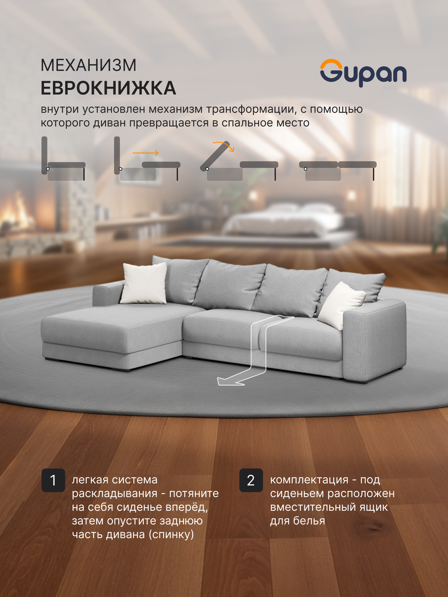 Отзывы на Диван угловой Gupan Ланкастер Велюр Amigo Ash, раскладной, механизм еврокнижка, беспружинный, с ящиком для белья
