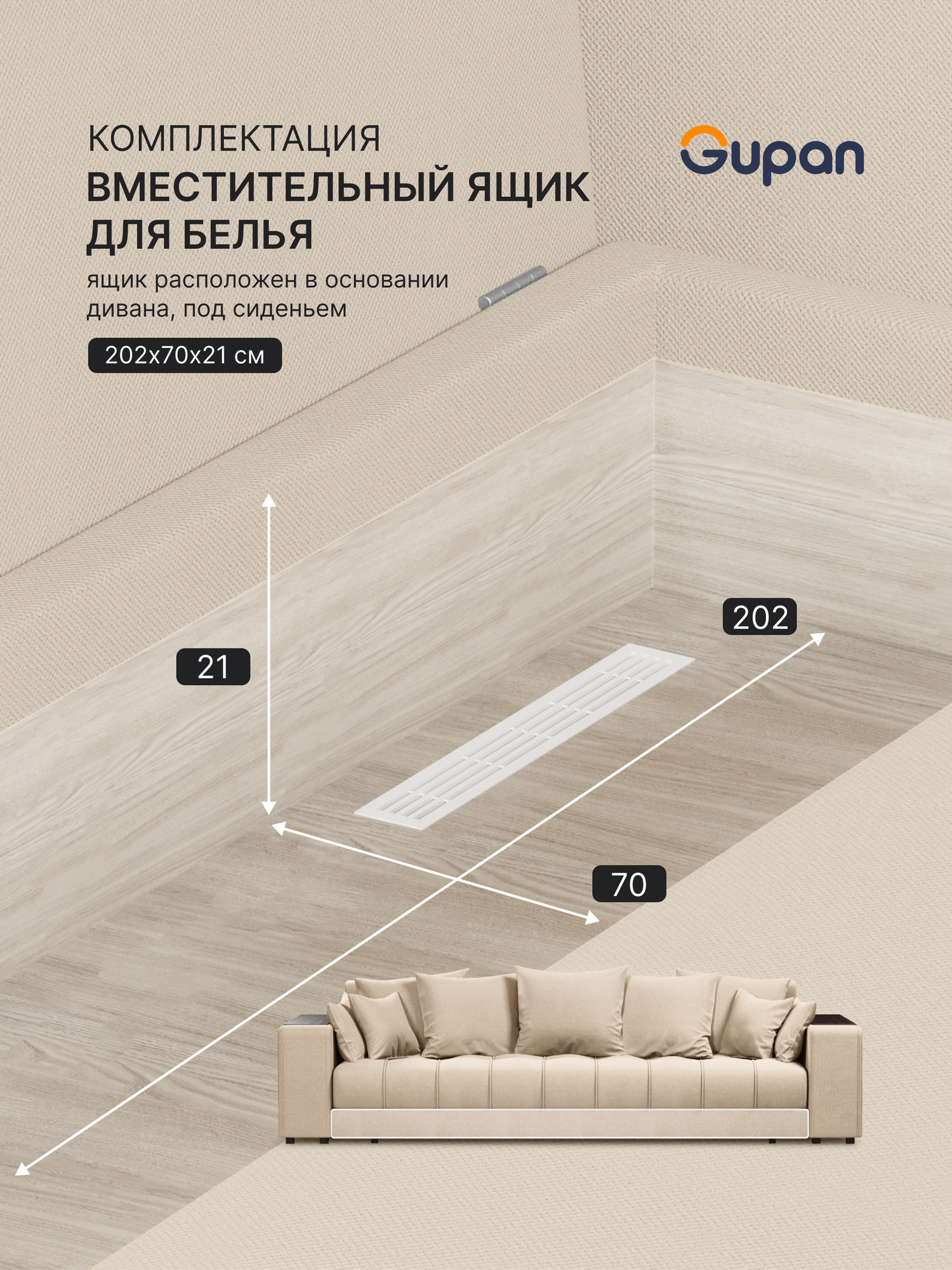 Диван кровать Gupan Дубай Велюр Amigo Bone, раскладной, механизм еврокнижка, беспружинный, с ящиком для белья информация: