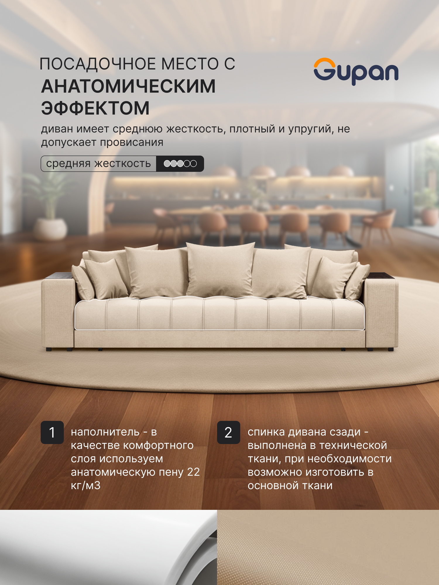 Отзывы на Диван кровать Gupan Дубай Велюр Amigo Bone, раскладной, механизм еврокнижка, беспружинный, с ящиком для белья