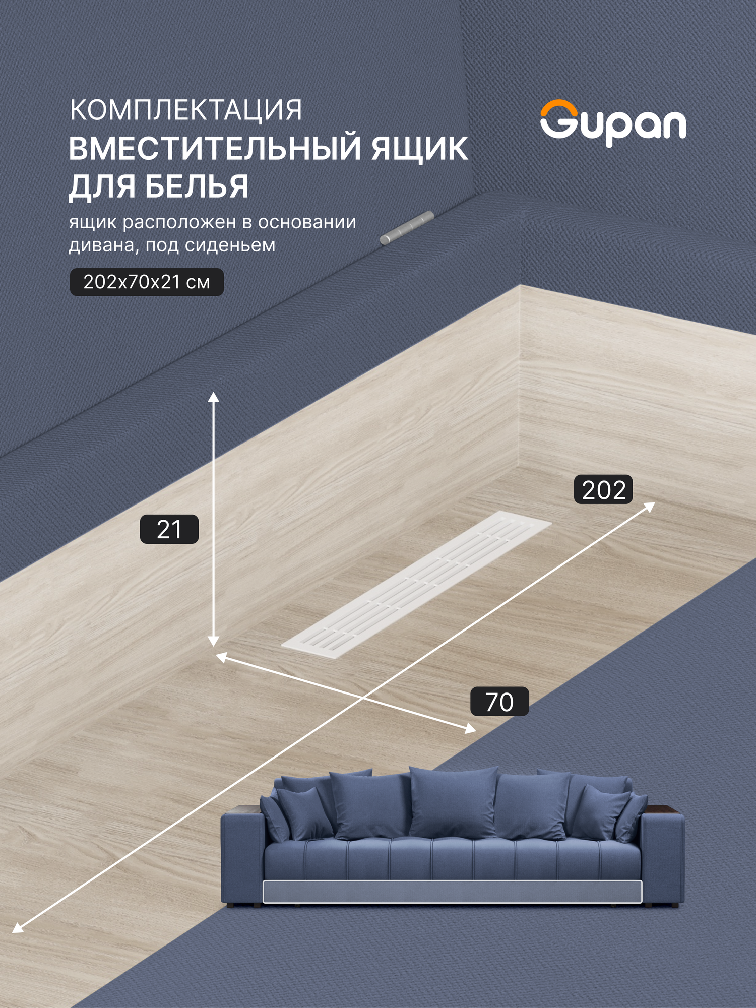 Диван кровать Gupan Дубай Велюр Amigo Navy, раскладной, механизм еврокнижка, беспружинный, с ящиком для белья информация: