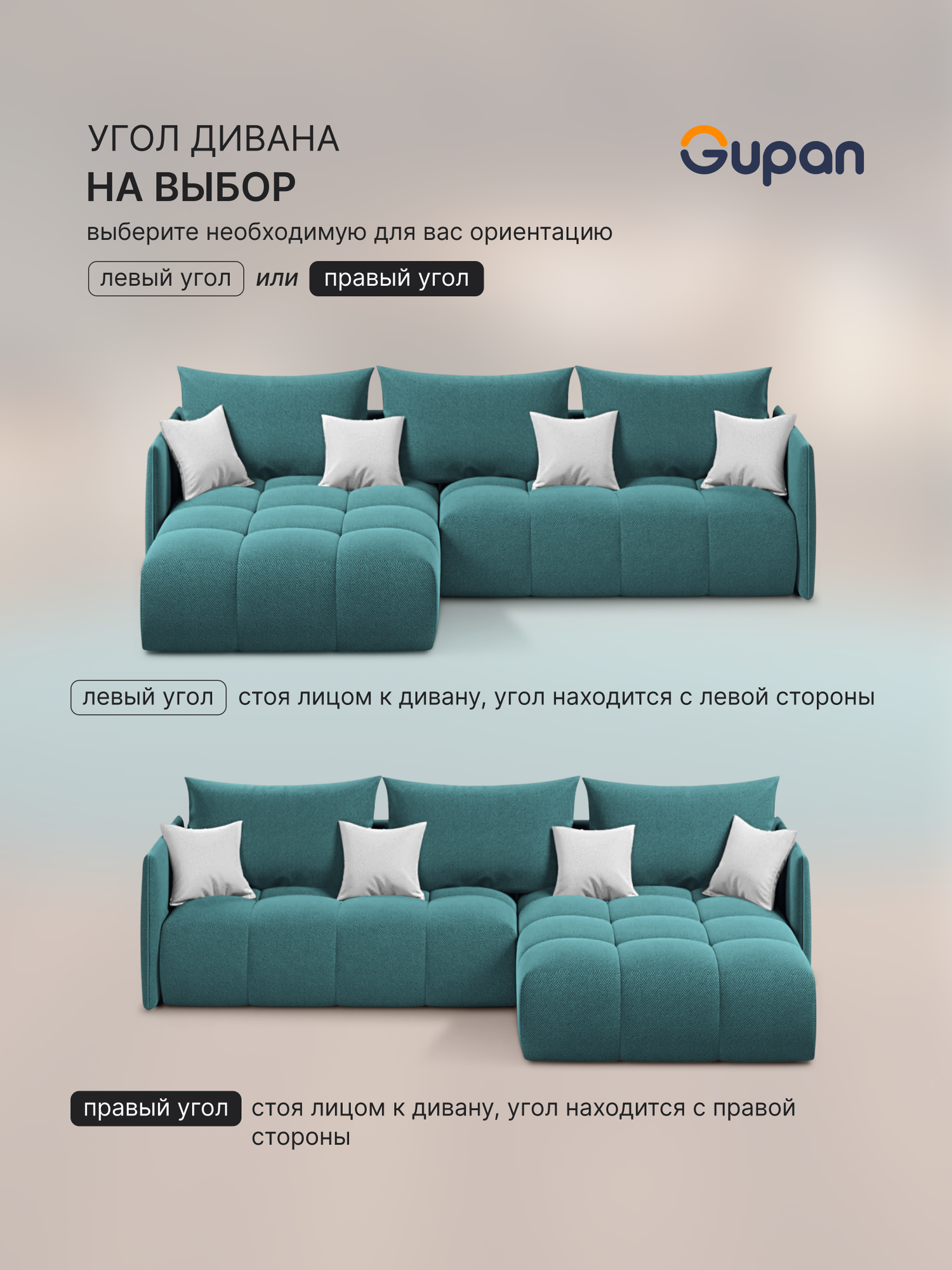 Диван угловой Gupan Лагуна Велюр Amigo Lagoon, раскладной, механизм еврокнижка, беспружинный, с ящиком для белья информация: