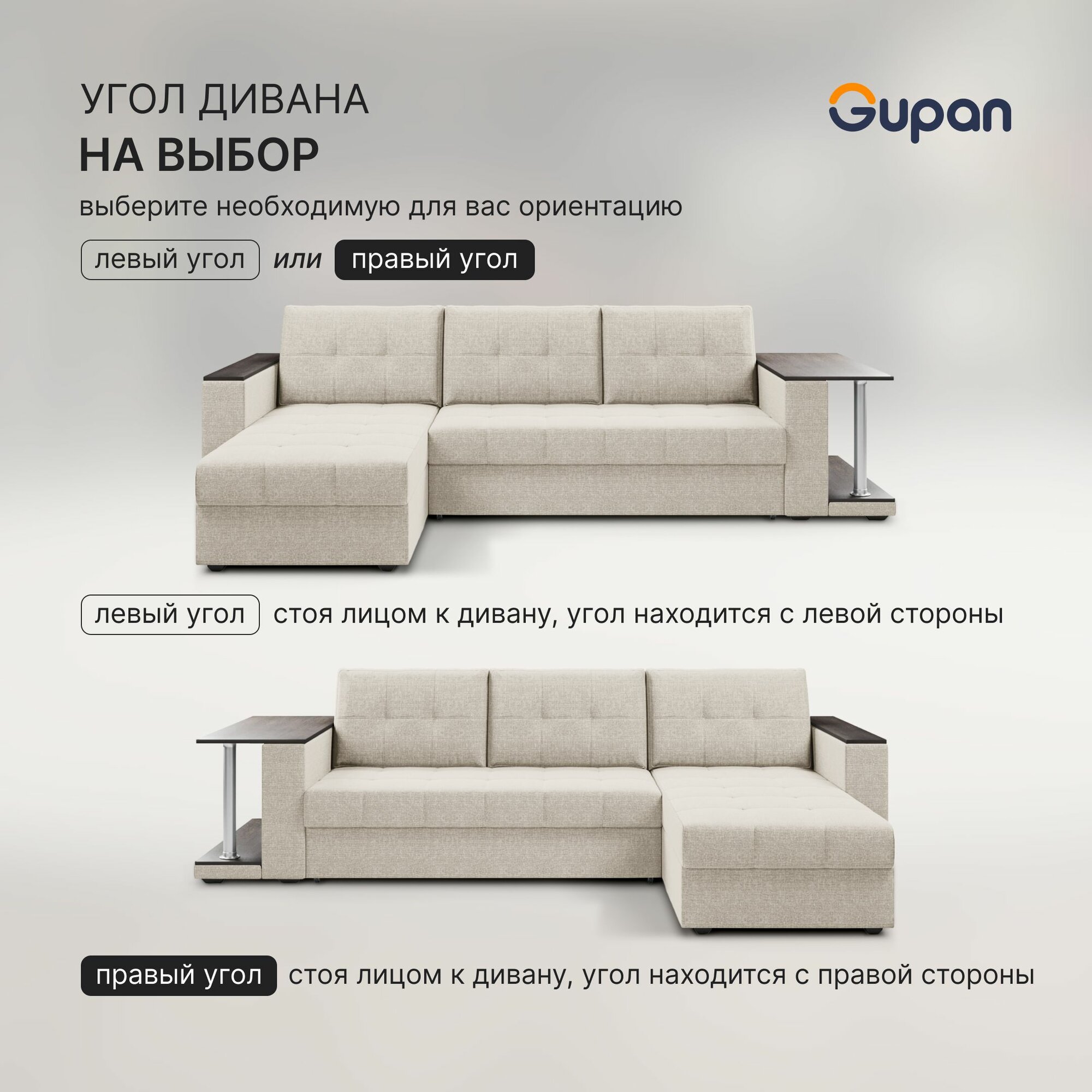 10 цен на Диван угловой Gupan Атланта Классик Хит / Люкс со столом Рогожка Savana Milk, раскладной, механизм дельфин, беспружинный, с ящиком для белья