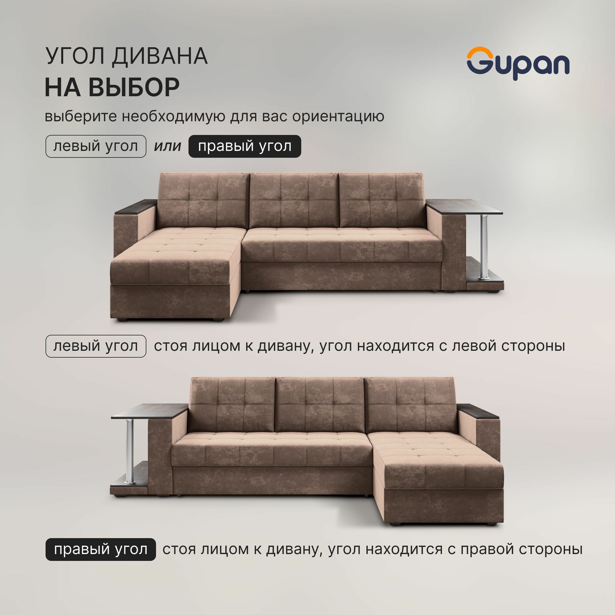 10 цен на Диван угловой Gupan Атланта Классик Хит / Люкс со столом Велюр Bingo Cocoa, раскладной, механизм дельфин, беспружинный, с ящиком для белья
