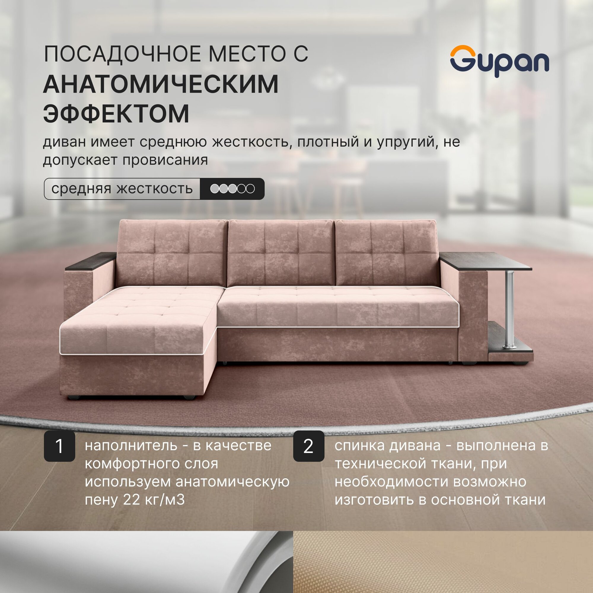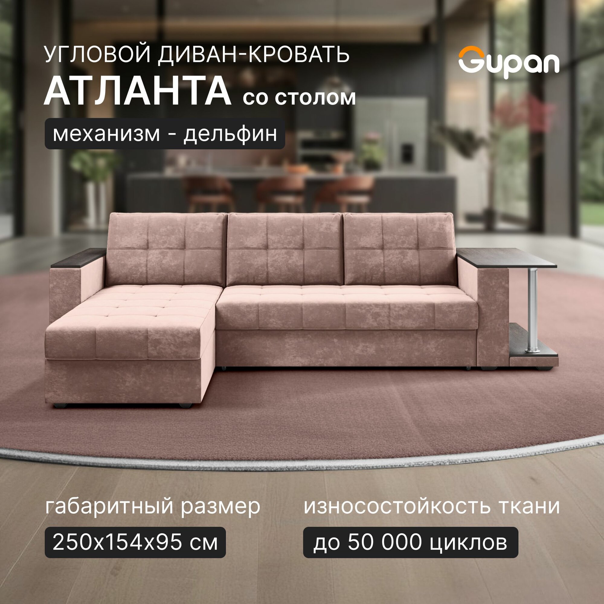 10 цен на Диван угловой Gupan Атланта Классик Хит / Люкс со столом Велюр Bingo Desert, раскладной, механизм дельфин, беспружинный, с ящиком для белья