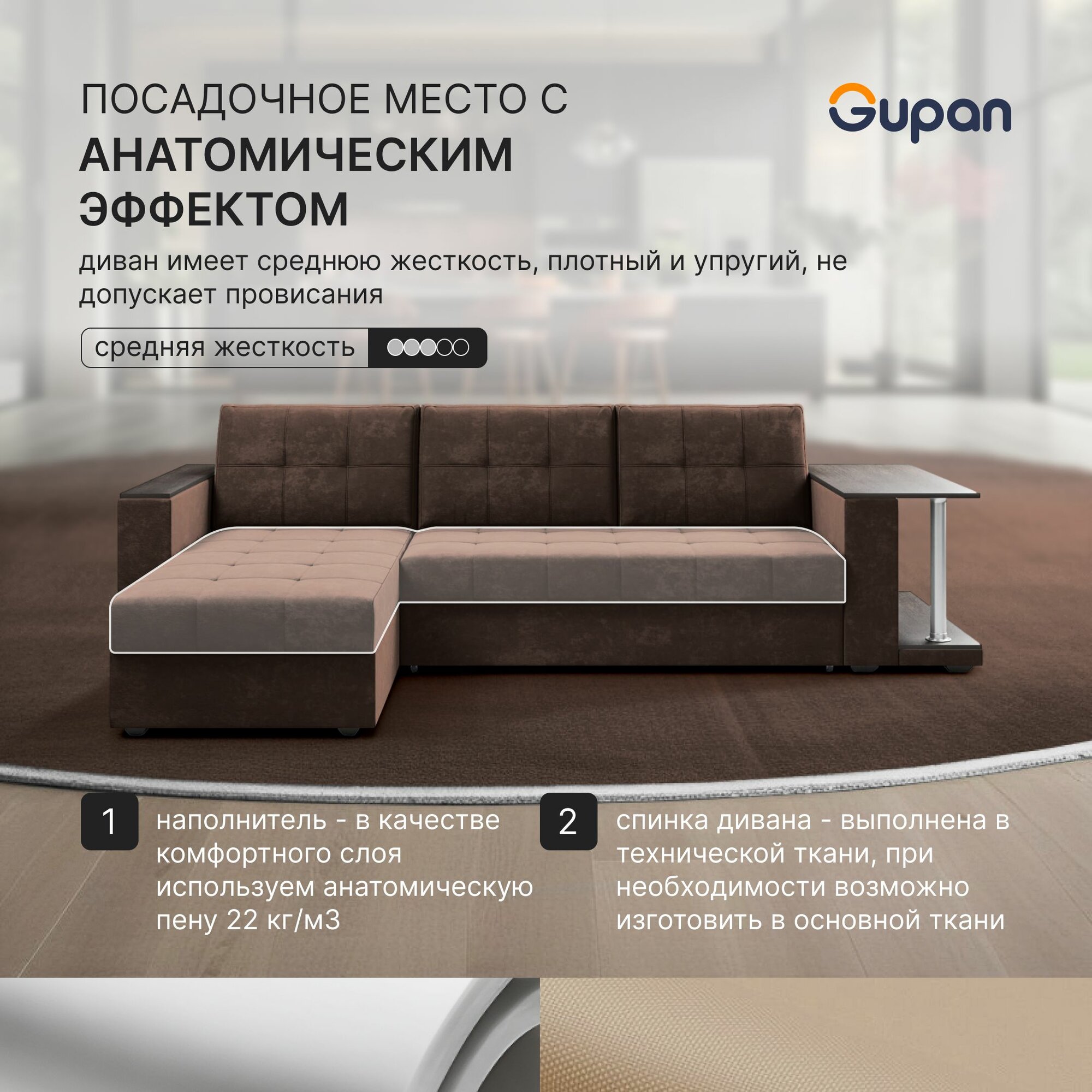 Диван угловой Gupan Атланта Классик Хит / Люкс со столом Велюр Bingo Cocoa, раскладной, механизм дельфин, беспружинный, с ящиком для белья 40 992 ₽