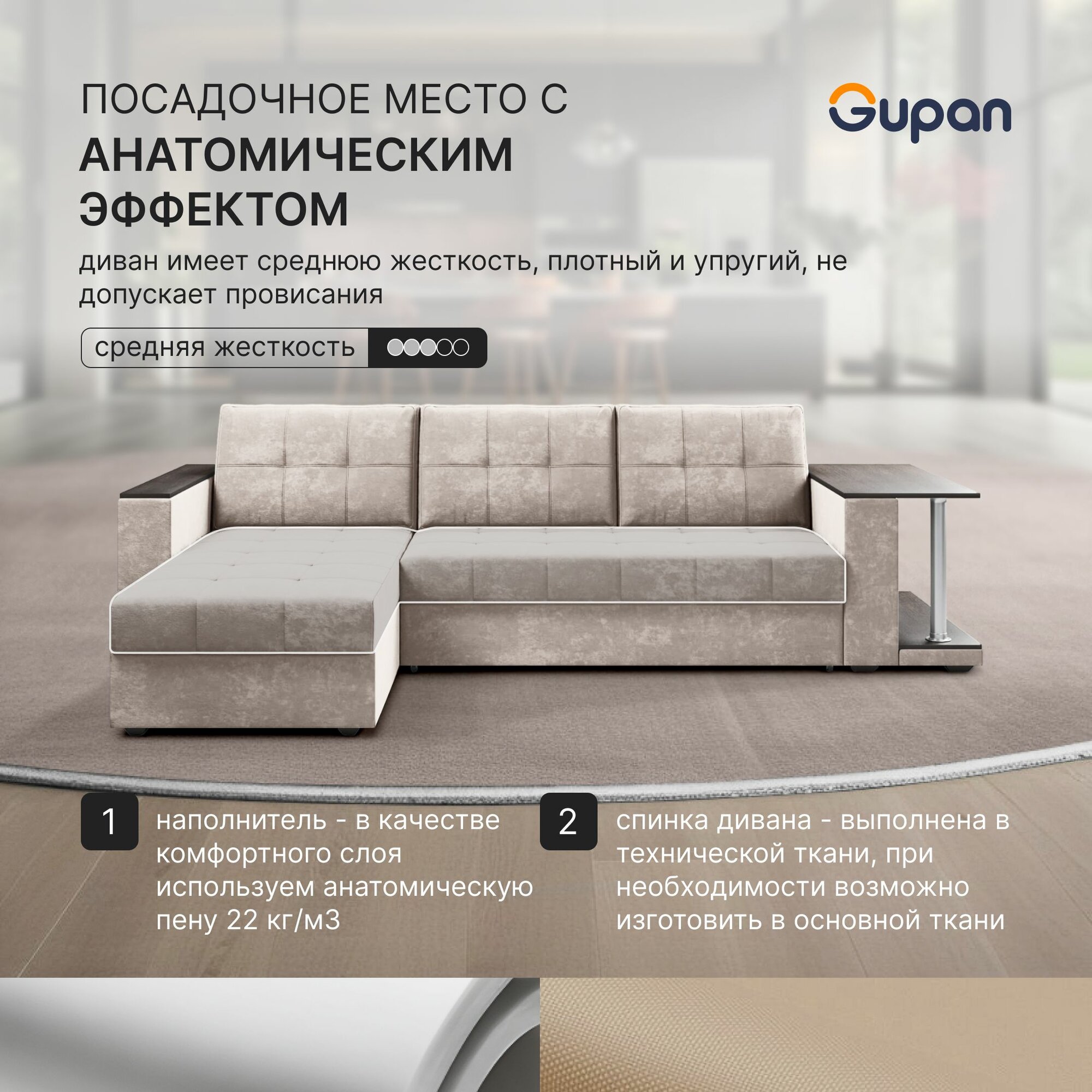 Отзывы на Диван угловой Gupan Атланта Классик Хит / Люкс со столом Велюр Bingo Bone, раскладной, механизм дельфин, беспружинный, с ящиком для белья