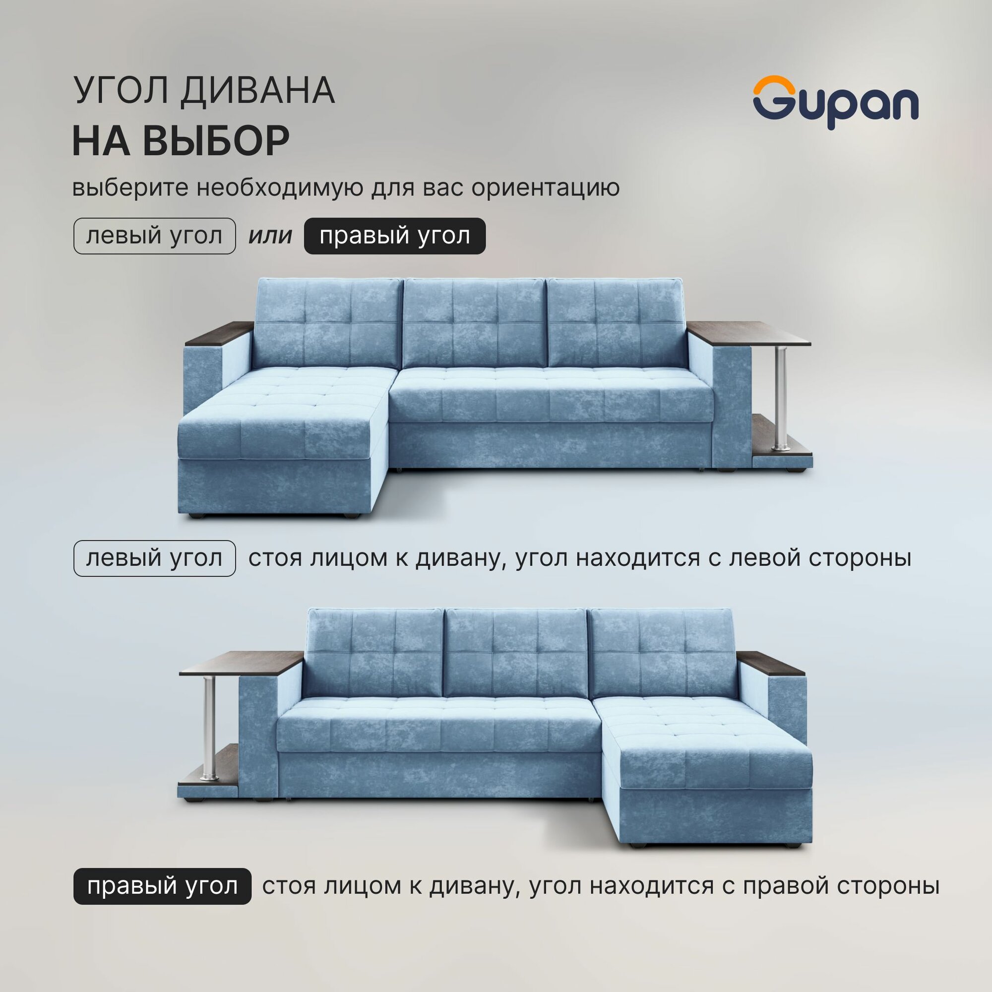 10 цен на Диван угловой Gupan Атланта Классик Хит / Люкс со столом Велюр Bingo Slate, раскладной, механизм дельфин, беспружинный, с ящиком для белья