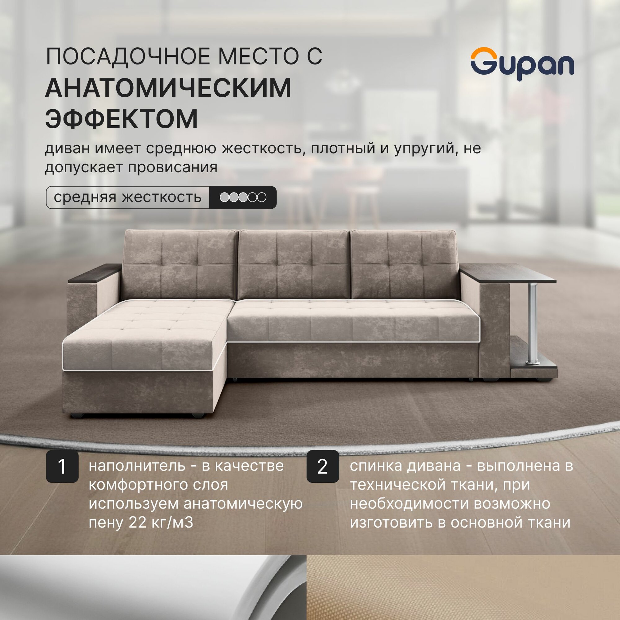 Диван угловой Gupan Атланта Классик Хит / Люкс со столом Рогожка Savana Beige, раскладной, механизм дельфин, беспружинный, с ящиком для белья 40 748 ₽