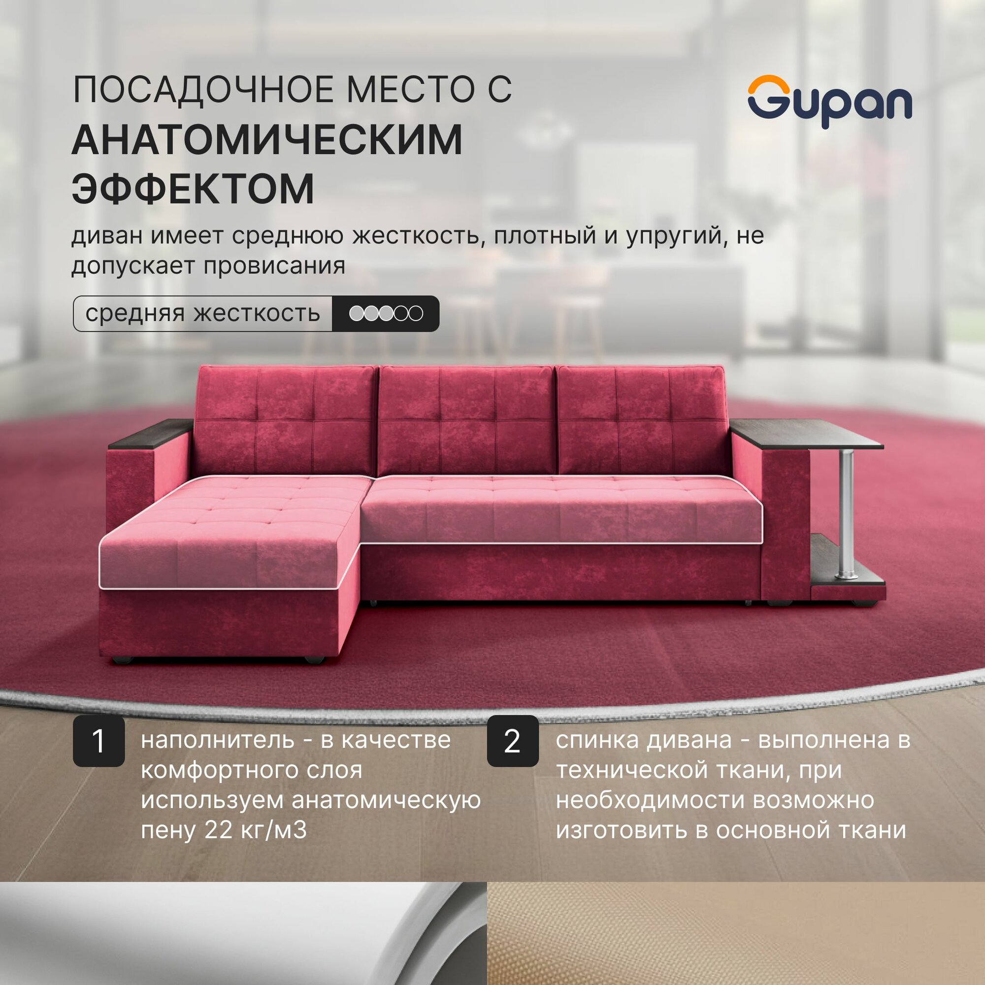Отзывы на Диван угловой Gupan Атланта Классик Хит / Люкс со столом Велюр Bingo Berry, раскладной, механизм дельфин, беспружинный, с ящиком для белья