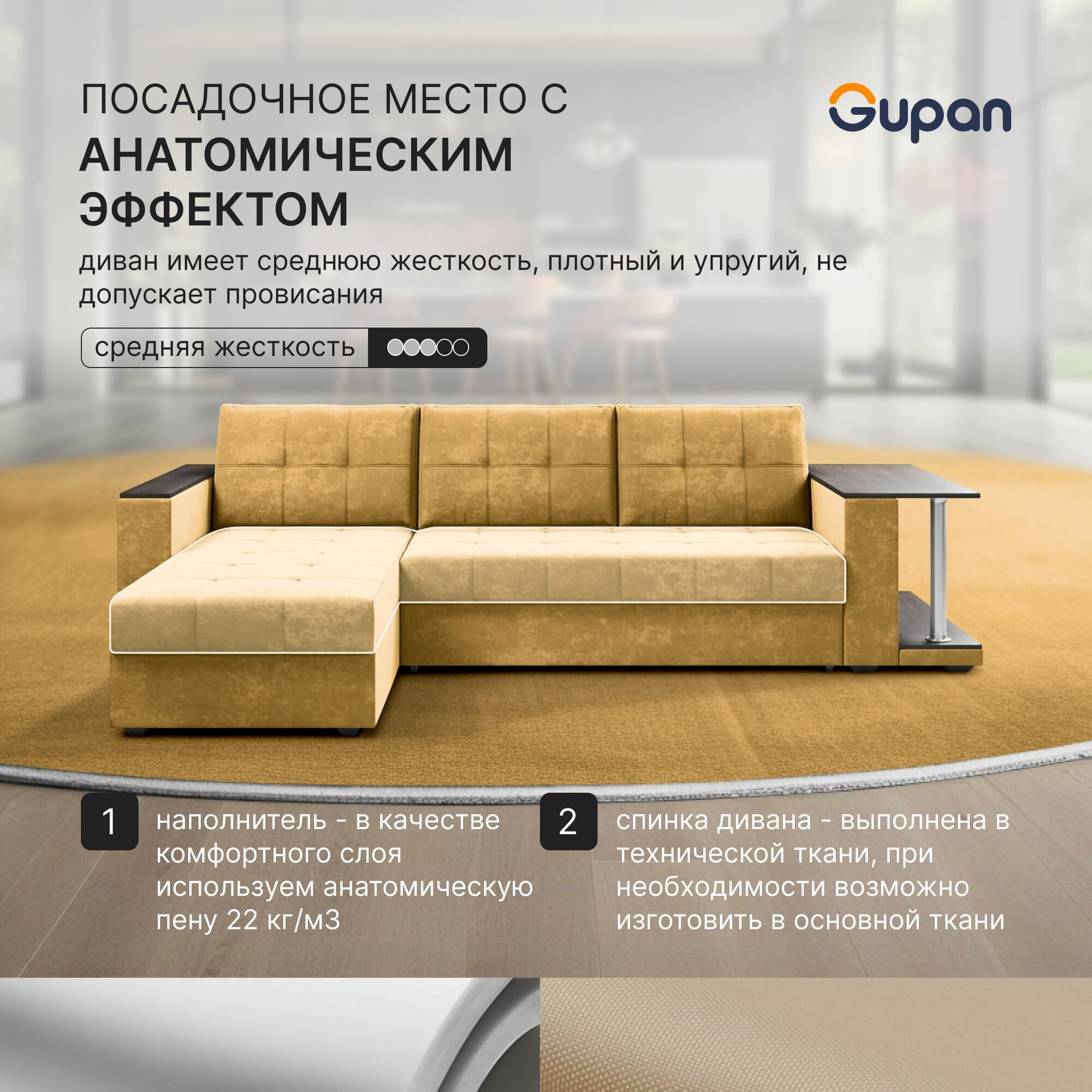 10 цен на Диван угловой Gupan Атланта Классик Хит / Люкс со столом Велюр Bingo Mustard, раскладной, механизм дельфин, беспружинный, с ящиком для белья