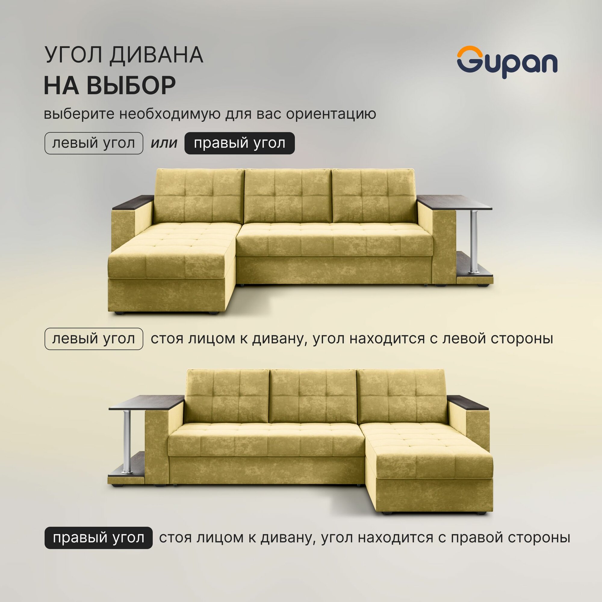 10 цен на Диван угловой Gupan Атланта Классик Хит / Люкс со столом Велюр Bingo Yellow, раскладной, механизм дельфин, беспружинный, с ящиком для белья