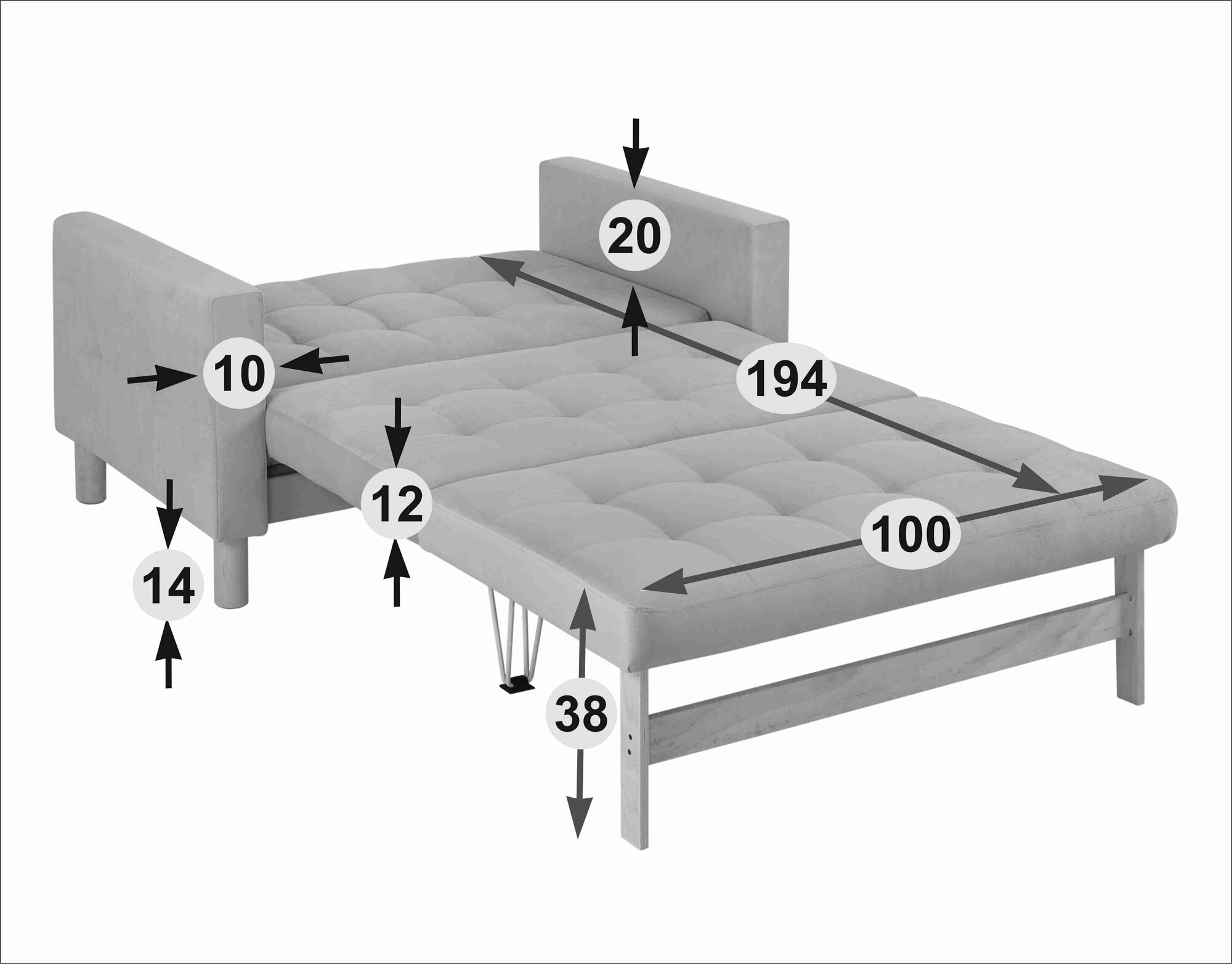 10 цен на Диван-кровать Этро, прямой, 122*77*78, спальное 100*194, рогожка серая, Лагуна 932