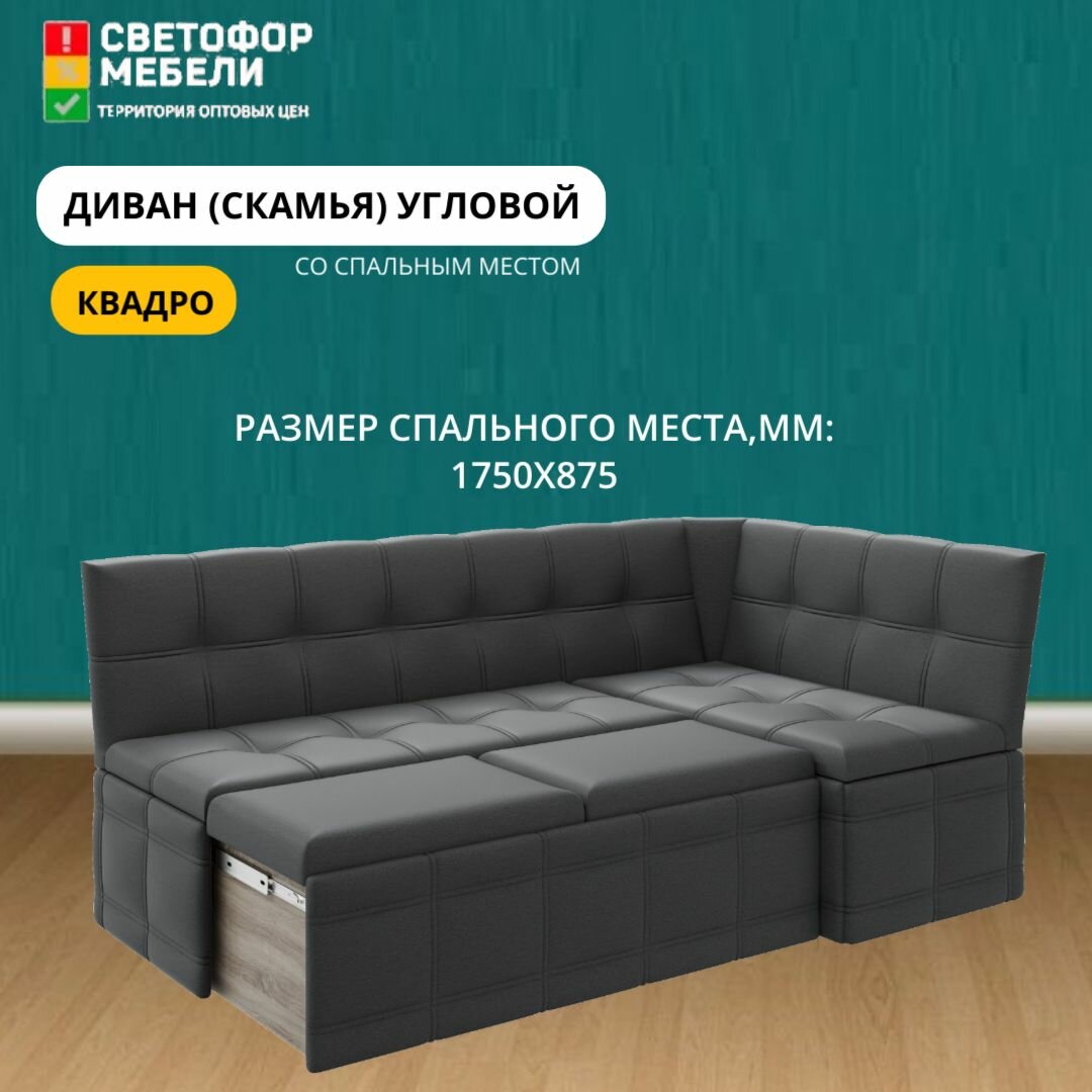 Угловой диван со спальным местом Квадро Серый, ЛДСП/ткань, выкатной, с ящиком для хранения, для кухни 1910х820х1180 бонмебель 26 150 ₽