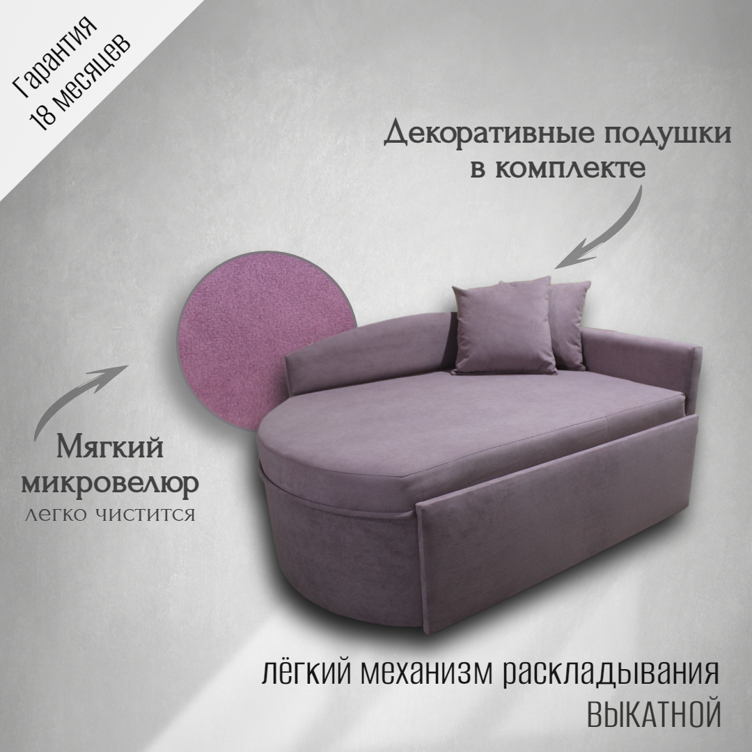 Диван кровать , Кушетка односпальная , Механизм выкатной , Цвет: лаванда, угол слева,123*75*68 19 800 ₽