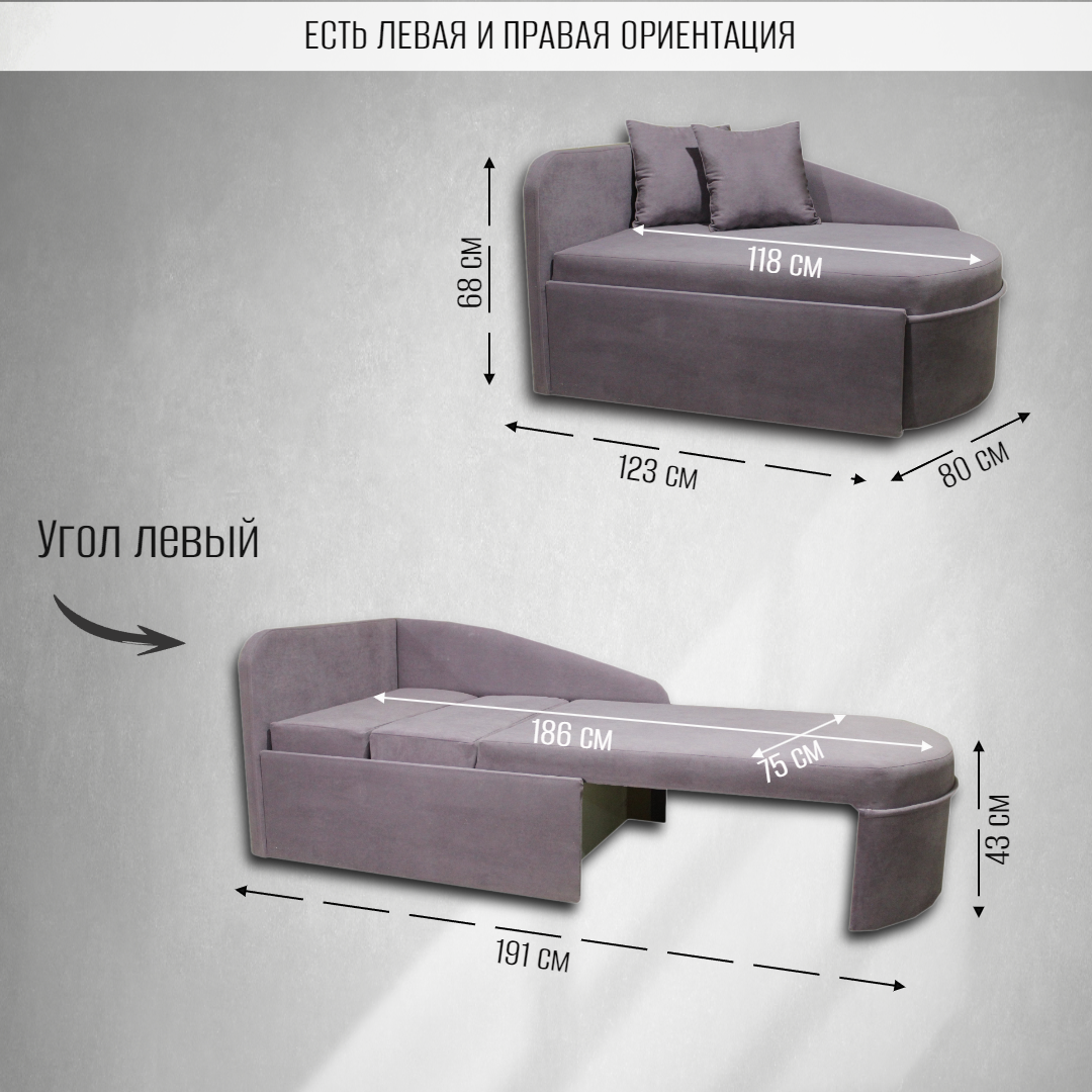 Диван кровать , Кушетка односпальная , Механизм выкатной , Цвет: лаванда, угол справа, 124*75*68 18 100 ₽