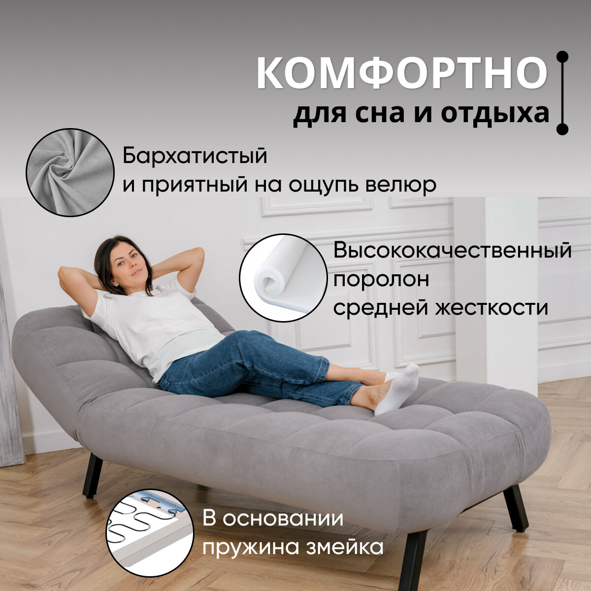 Кушетка оттоманка Brendoss 310 лофт раскладная регулируемая клик-кляк на металлокаркасе материал износостойкий велюр, серый, 95х170х94 см 33 678 ₽