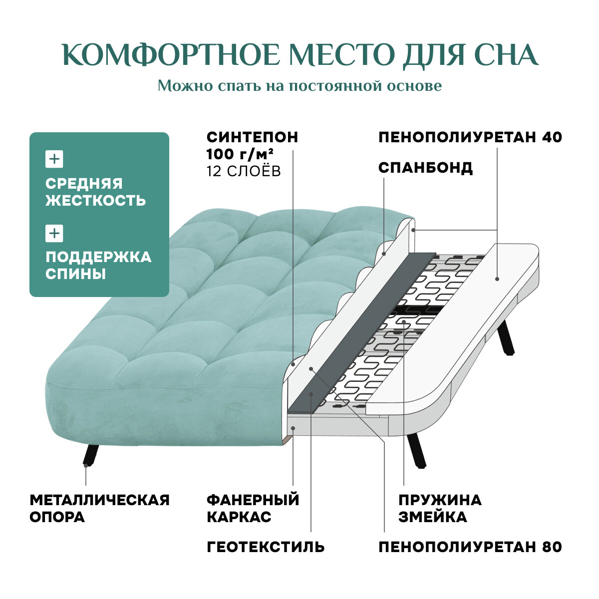 | Особенности | антивандальная обивка, без подлокотников, пружинный блок, раскладная конструкция |