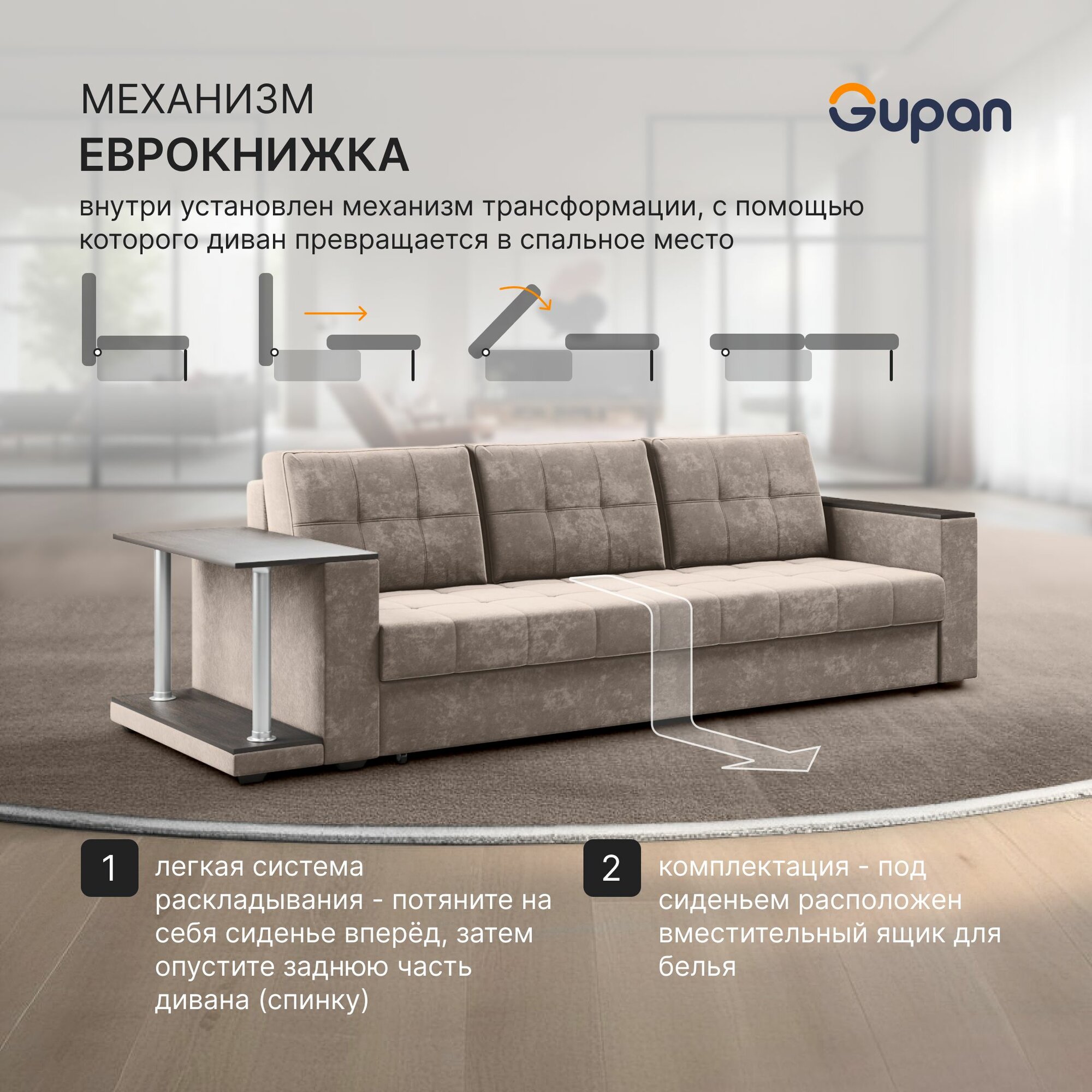 Диван кровать Gupan Атланта Классик Люкс со столом, Велюр Bingo Beige, раскладной, механизм еврокнижка, беспружинный, с ящиком для белья 33 699 ₽
