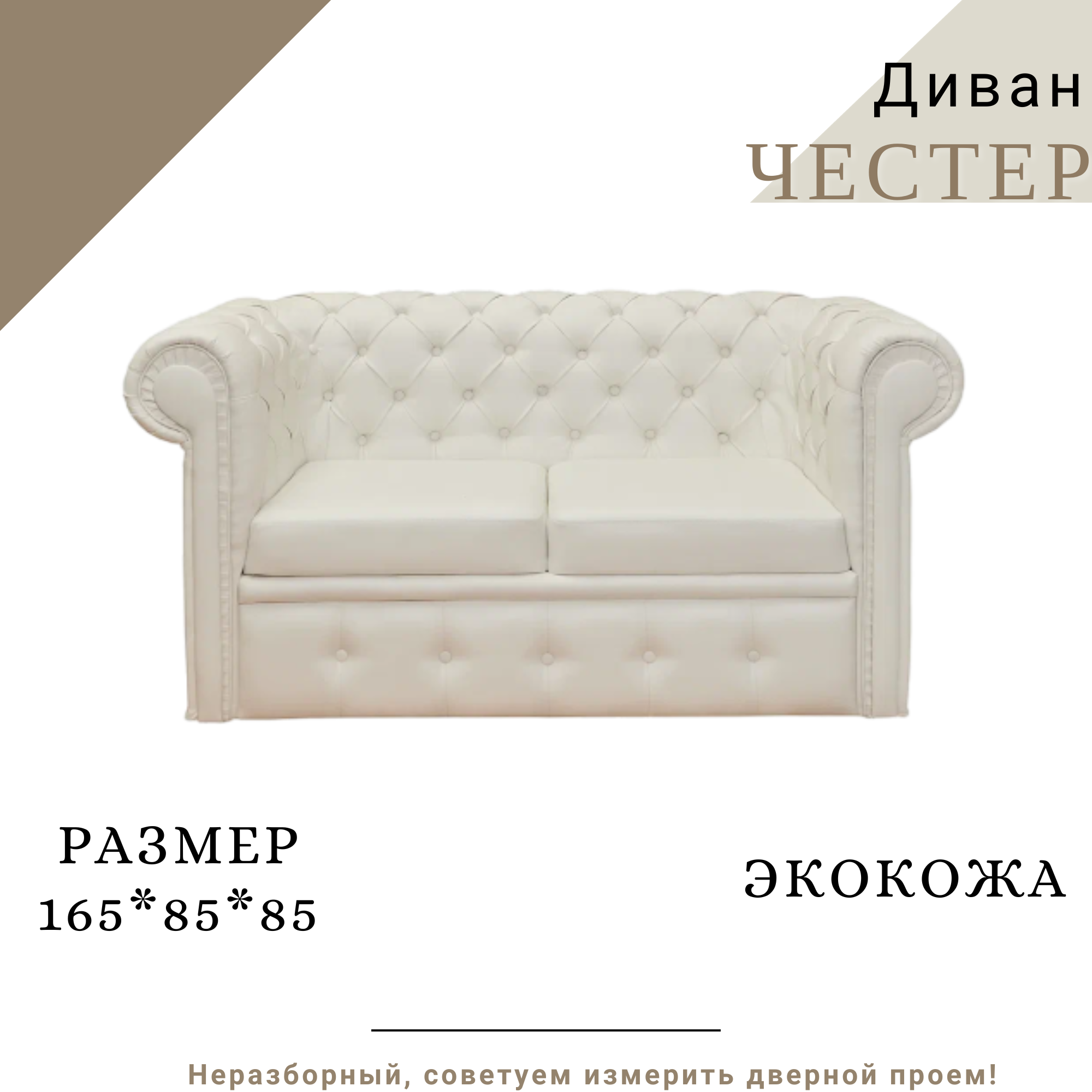 Отзывы на Прямой диван Честер, 2-х местный, нераскладной, экокожа PG SNOW