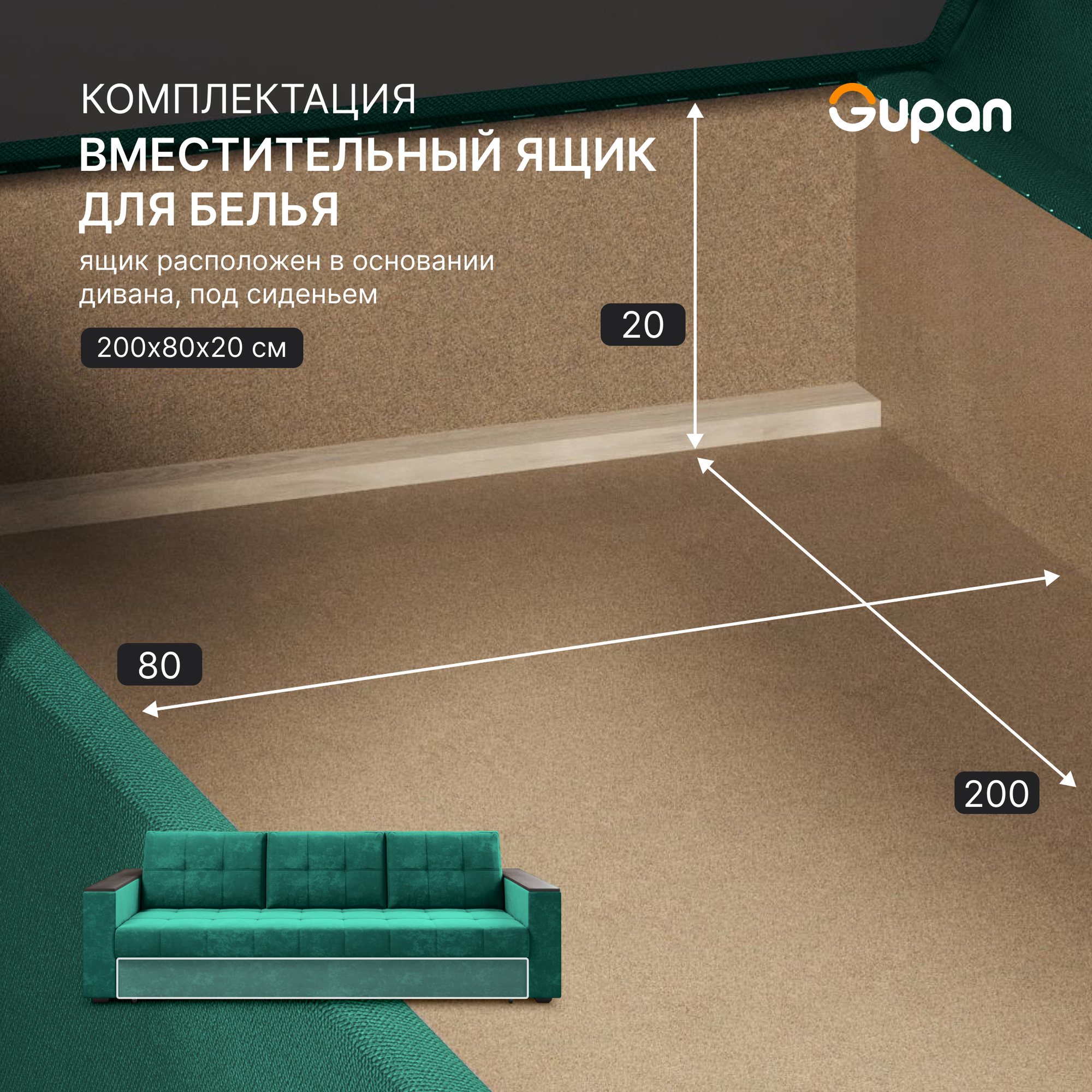 Диван кровать Gupan Атланта Классик Люкс Велюр Bingo Green, раскладной, механизм еврокнижка, беспружинный, с ящиком для белья информация: