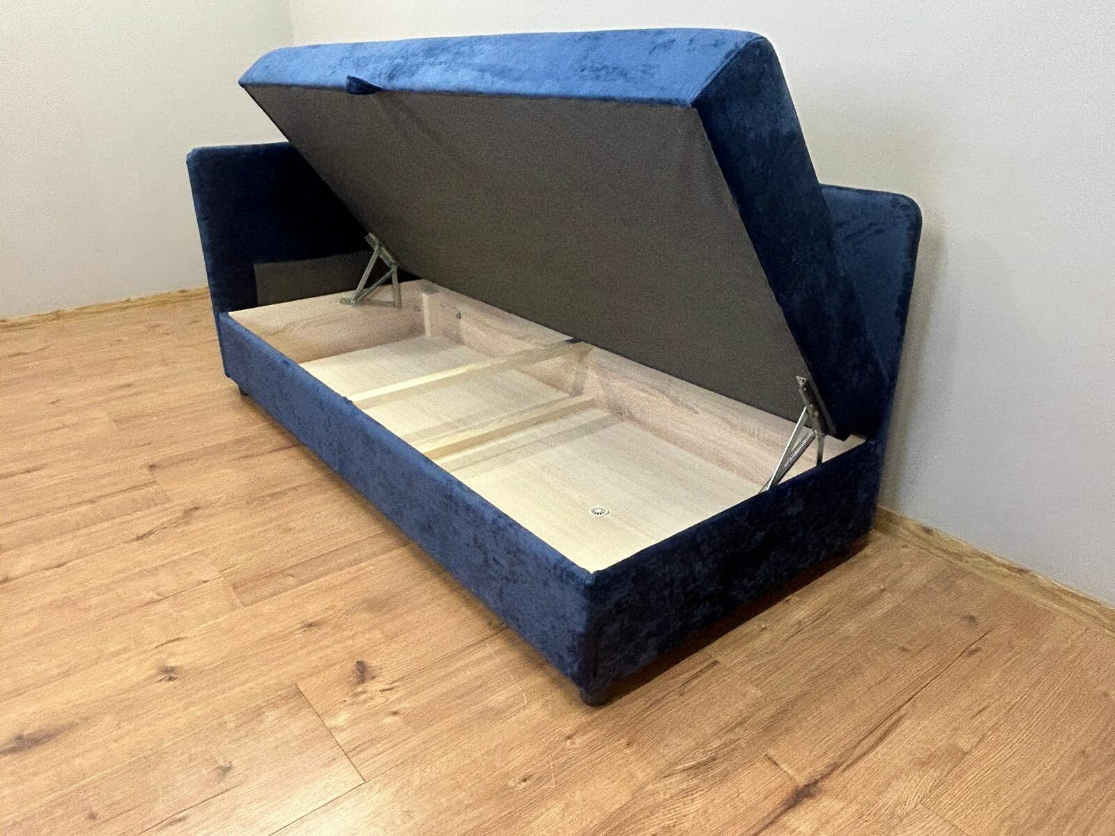 Диван-кровать, тахта односпальная, синий велюр, левый угол информация:
