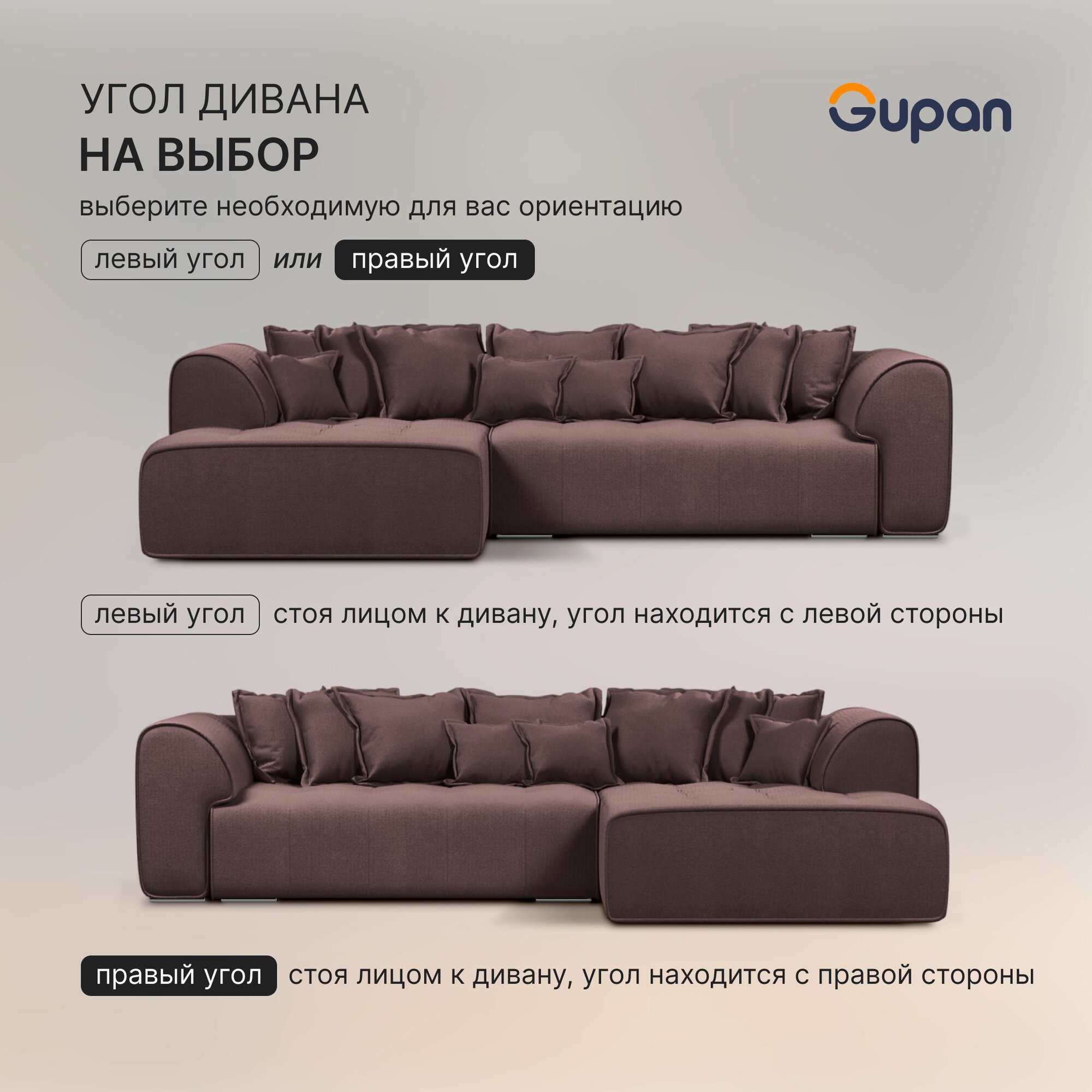 10 цен на Диван угловой Gupan Саян / Sayan Велюр Amigo Chocolate, раскладной, механизм выкатной, независимые пружины, с ящиком для белья