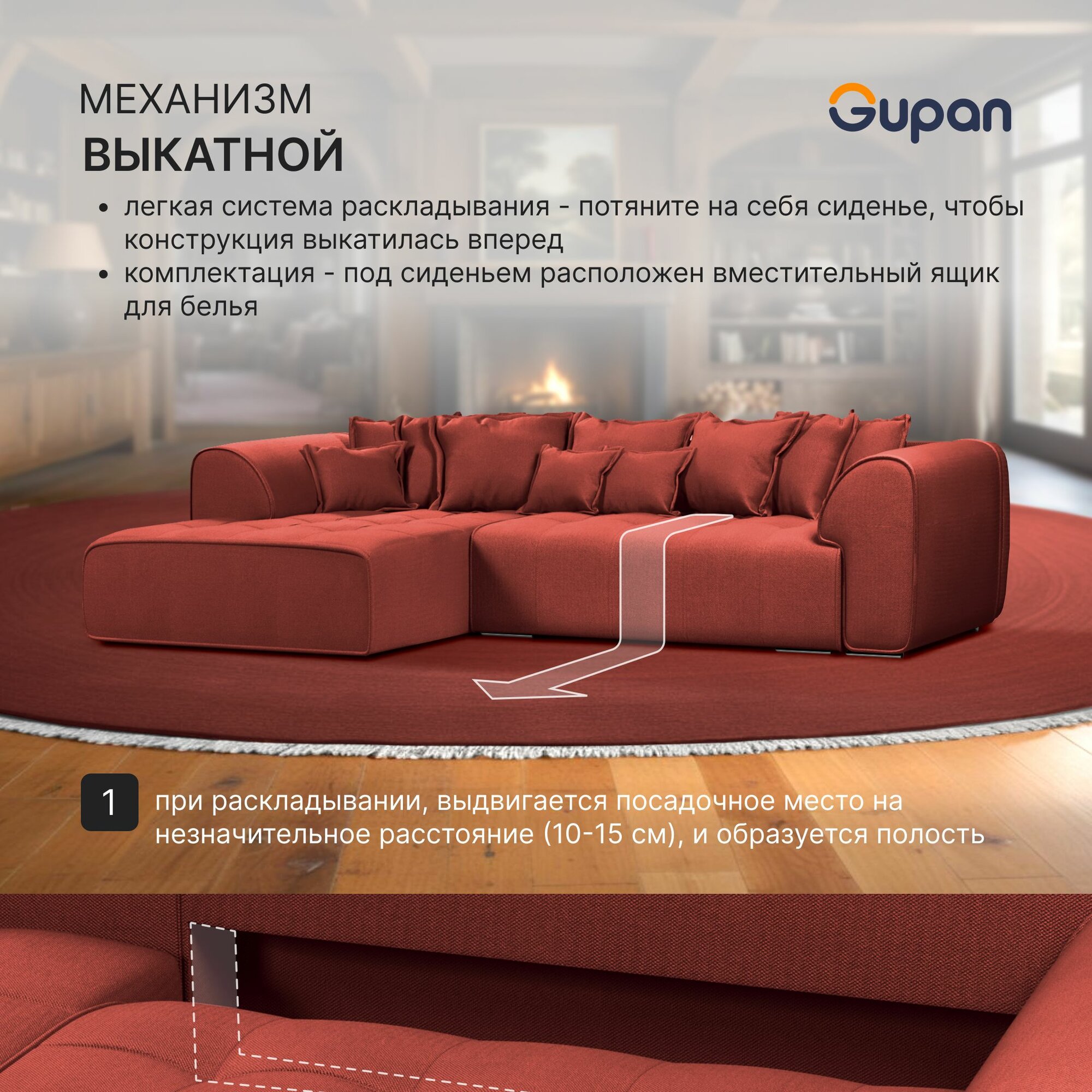 10 цен на Диван угловой Gupan Саян / Sayan Велюр Amigo Terra, раскладной, механизм выкатной, независимые пружины, с ящиком для белья