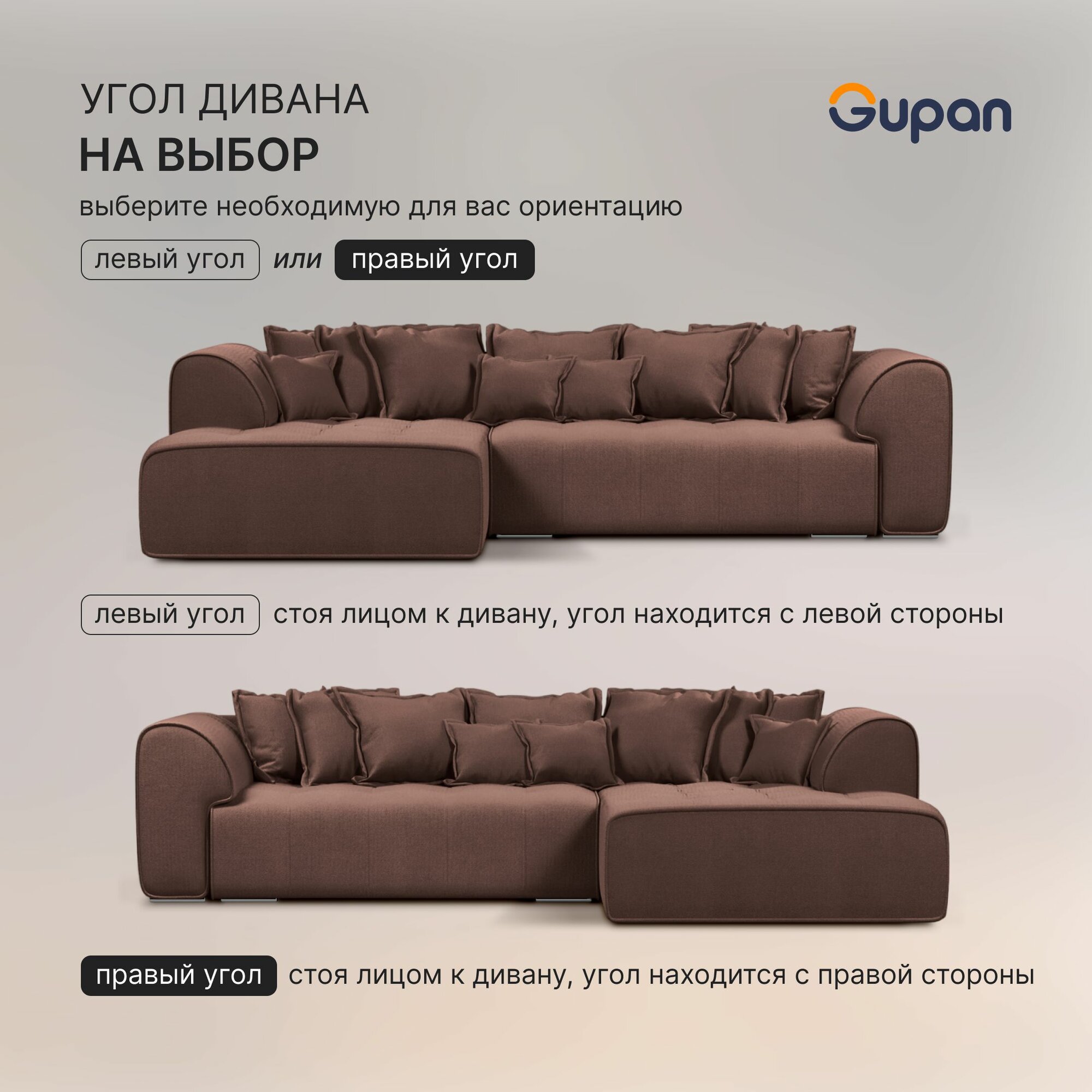 10 цен на Диван угловой Gupan Саян / Sayan Велюр Amigo Brown, раскладной, механизм выкатной, независимые пружины, с ящиком для белья