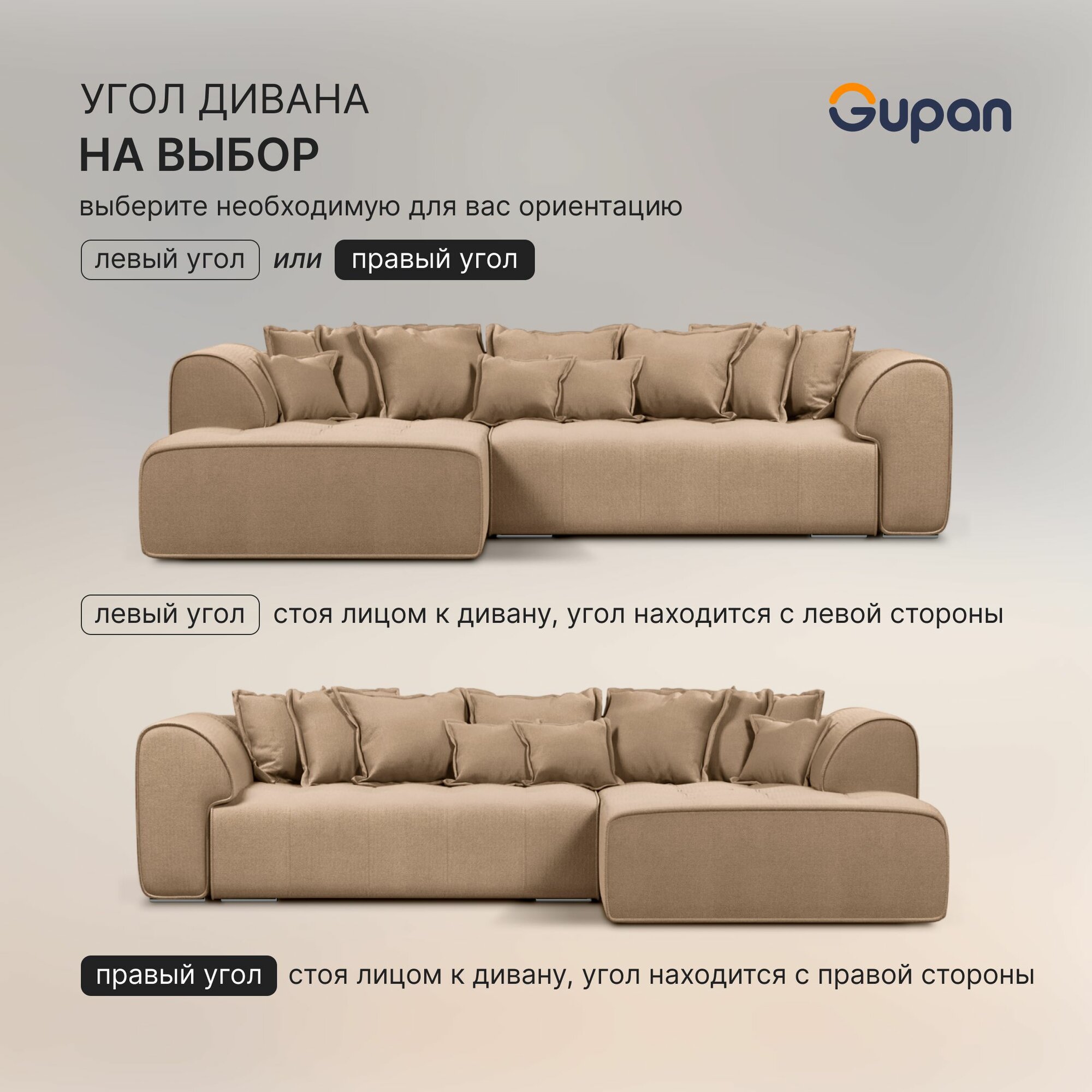 10 цен на Диван угловой Gupan Саян / Sayan Велюр Amigo Beige, раскладной, механизм выкатной, независимые пружины, с ящиком для белья