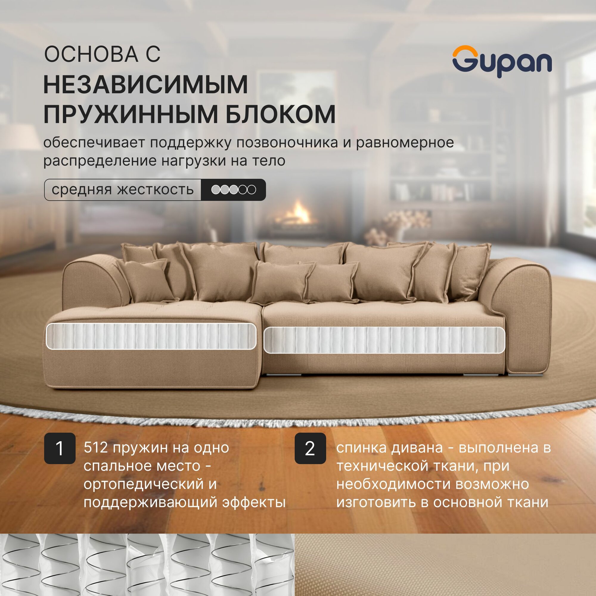 Отзывы на Диван угловой Gupan Саян / Sayan Велюр Amigo Beige, раскладной, механизм выкатной, независимые пружины, с ящиком для белья