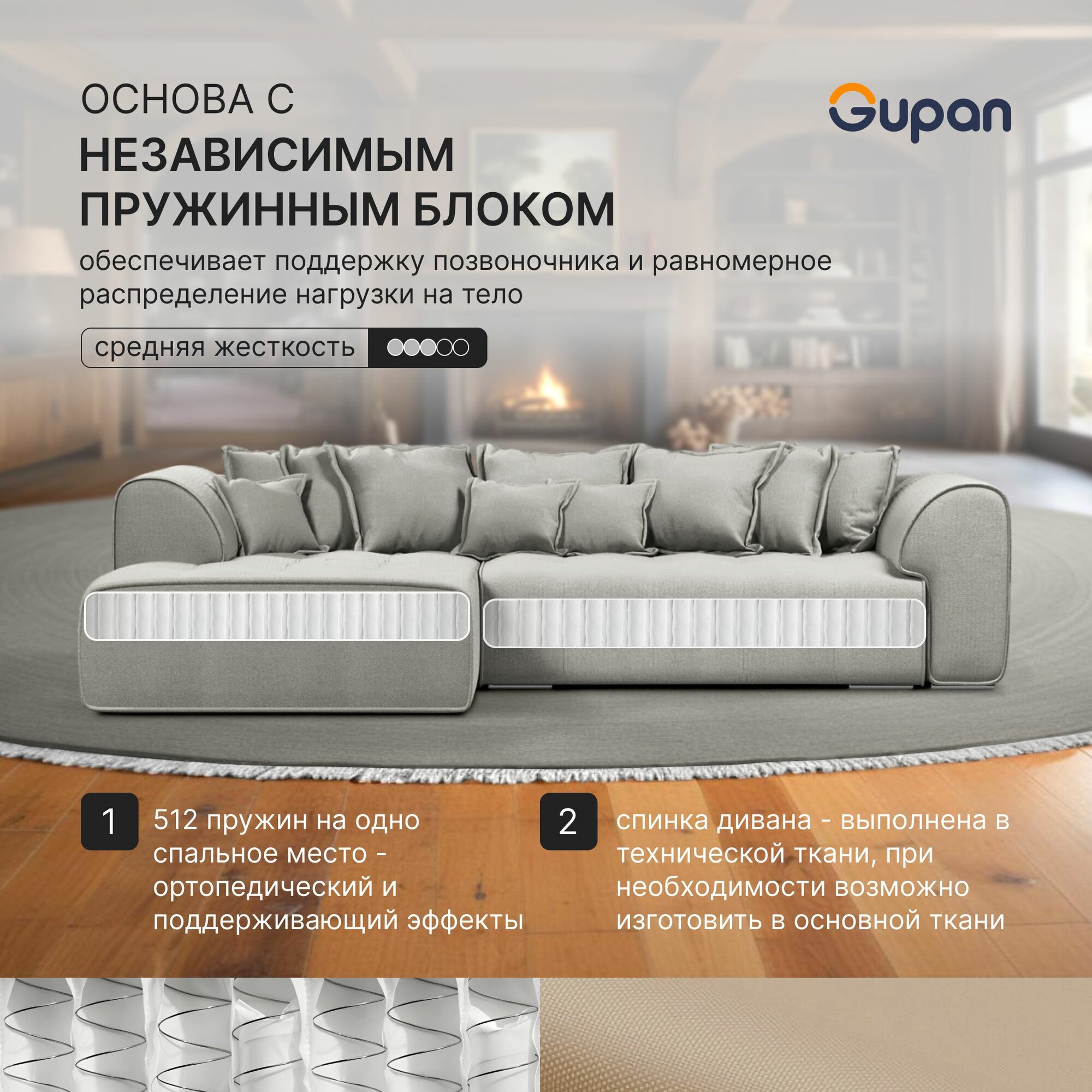 Диван угловой Gupan Саян / Sayan Велюр Amigo Ash, раскладной, механизм выкатной, независимые пружины, с ящиком для белья информация: