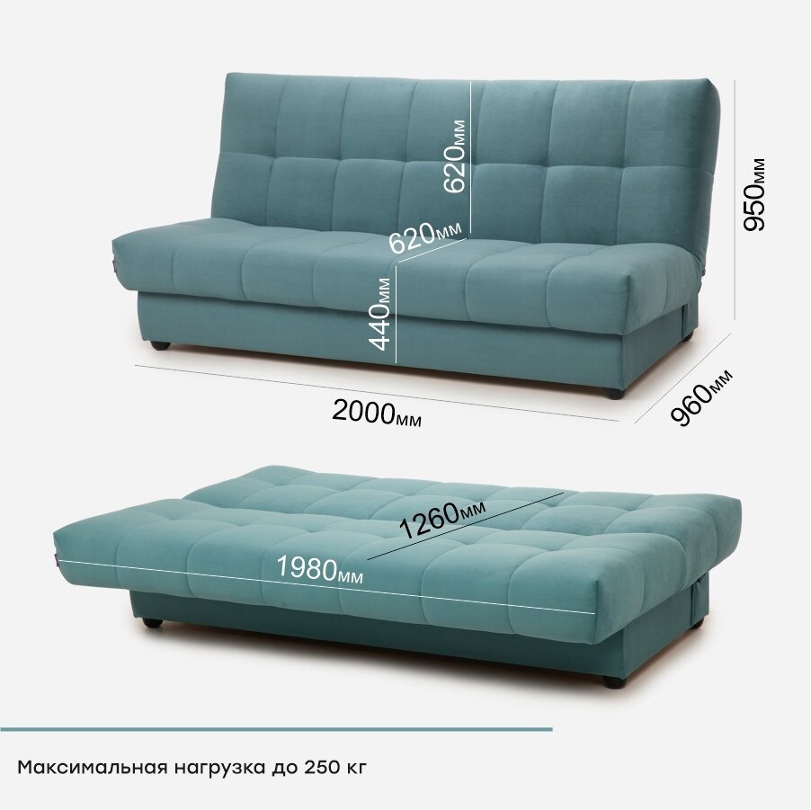 Диван кровать прямой с положением релакс Венера механизм клик-кляк, 2000 × 960 × 950 , цвет голубой, Мебельная Фабрика Аврора 28 390 ₽