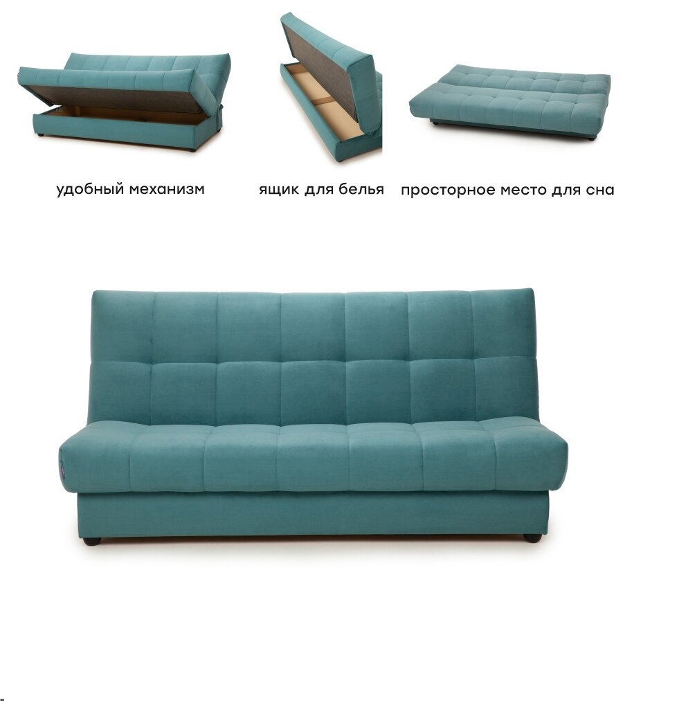 Диван кровать прямой с положением релакс Венера механизм клик-кляк 200 × 96 × 95 цвет голубой, Мебельная Фабрика Аврора информация: