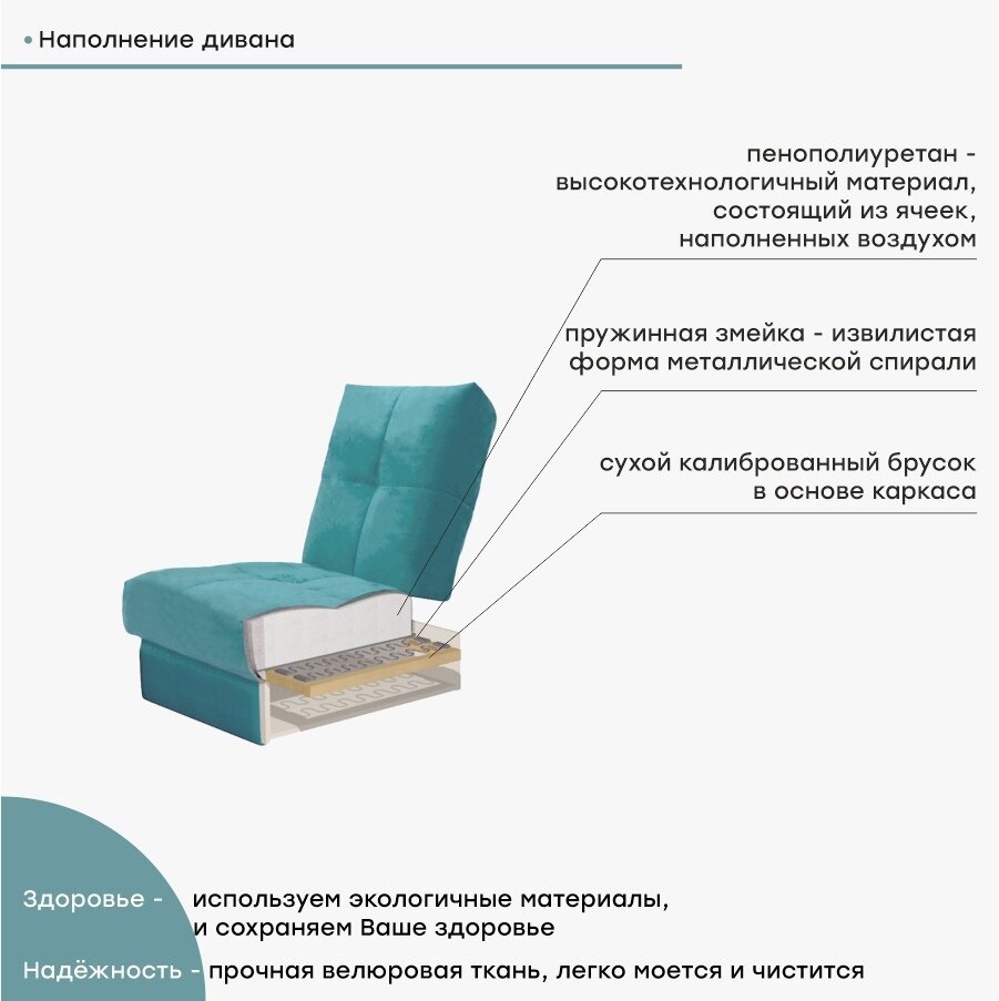 | Особенности | без подлокотников, пружинный блок, раскладная конструкция, ящик для белья |