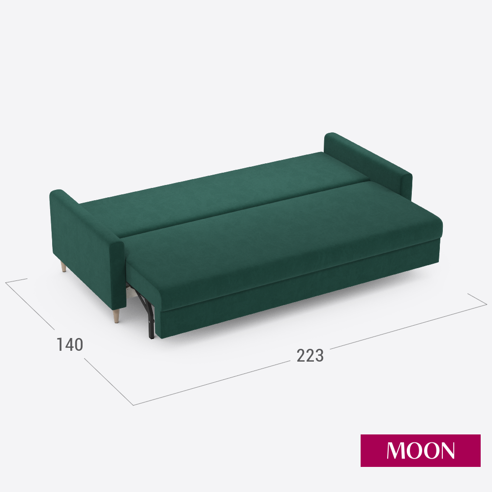Диван-кровать раскладной пантограф (тик-так) MOON FAMILY 146, велюр зеленый, 223х94х85 см. Эксклюзивная пена UniqFoam информация: