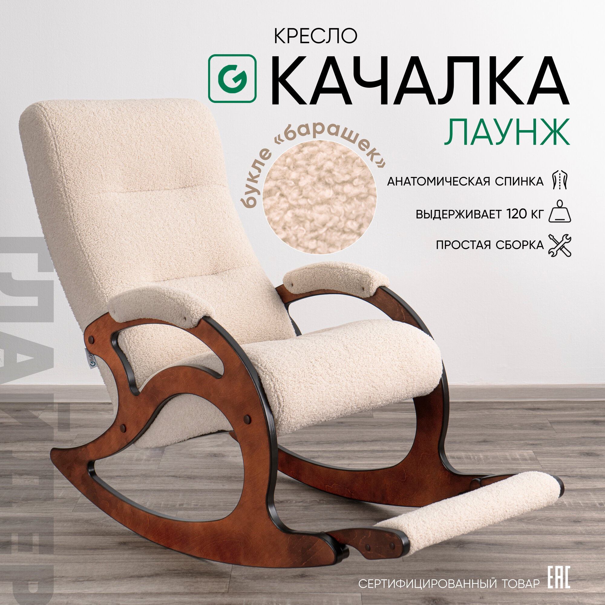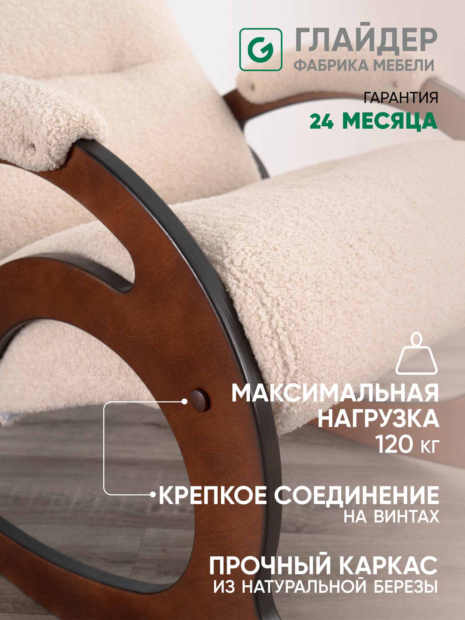 Кресло-качалка с подножкой для дома и дачи Glider Лаунж в ткани эко-мех "Барашик", цвет бежевый информация: