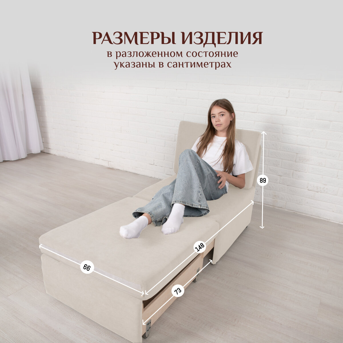 10 цен на Кресло-кровать на балкон Кресло Brendoss 505 раскладное, без подлокотников, материал износостойкий велюр, цвет молочный