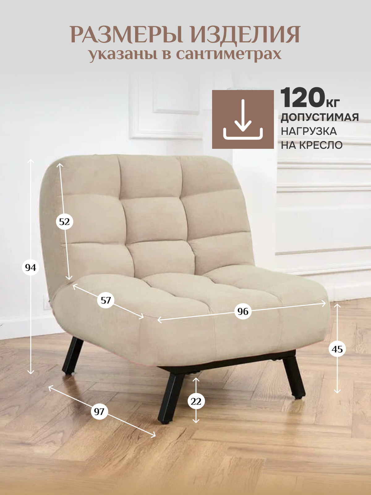 Кресло Brendoss 306 раскладное с регулируемой спинкой лофт, механизм клик-кляк, материал износостойкий велюр, цвет кремовый 29 106 ₽