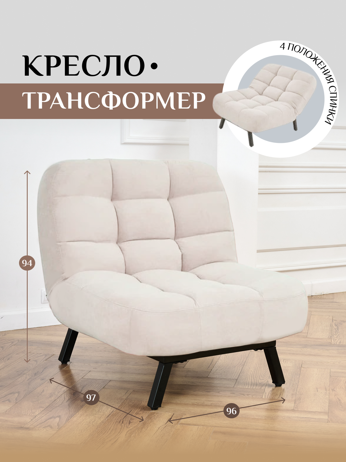 Кресло Brendoss 306 раскладное с регулируемой спинкой лофт, механизм клик-кляк, материал износостойкий велюр, цвет кремовый 29 106 ₽