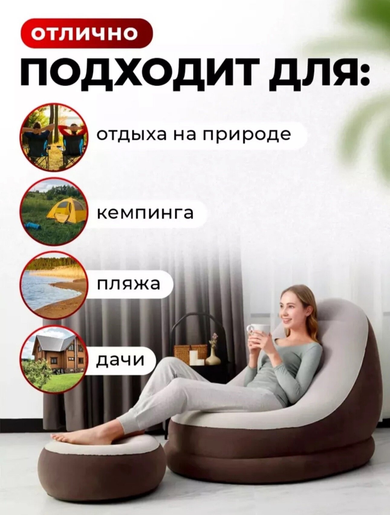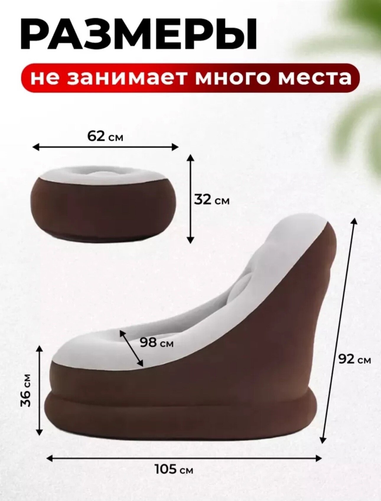 Надувное кресло с пуфом-подставкой для ног 2 082 ₽