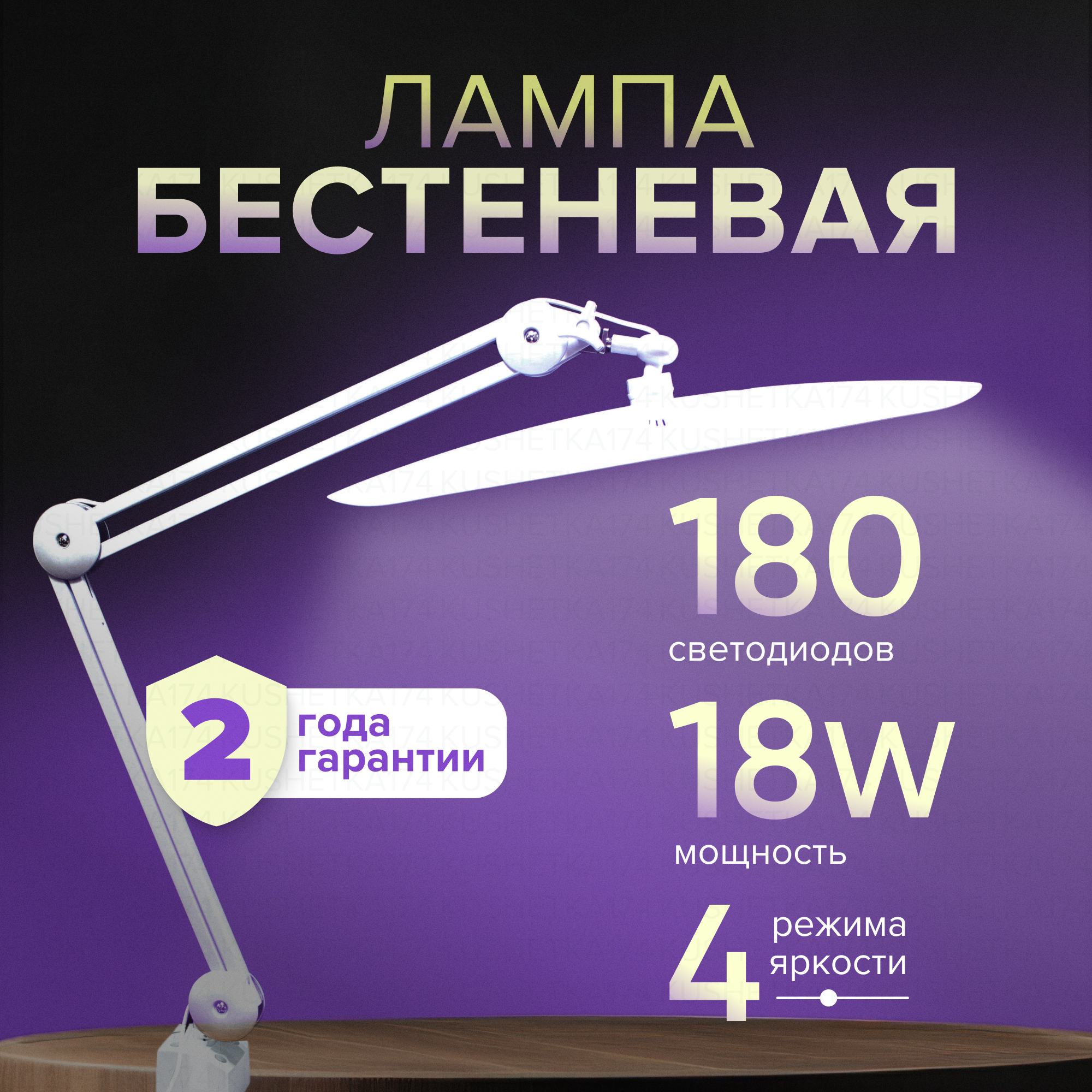 Лампа Бестеневая на струбцине Working 18w для мастеров наращивания ресниц, косметологов, маникюра, белая информация:
