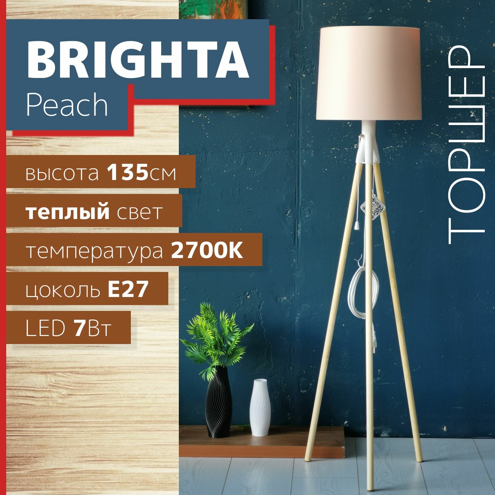 Торшер напольный BRIGHTA Peach. Cветильник напольный E27, 7Вт 3 650 ₽
